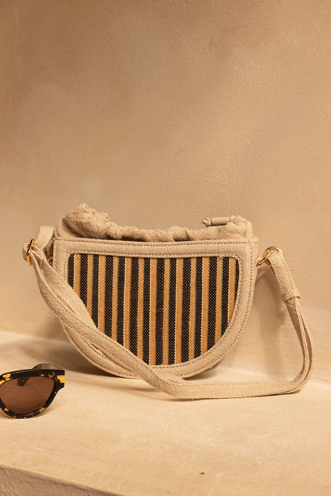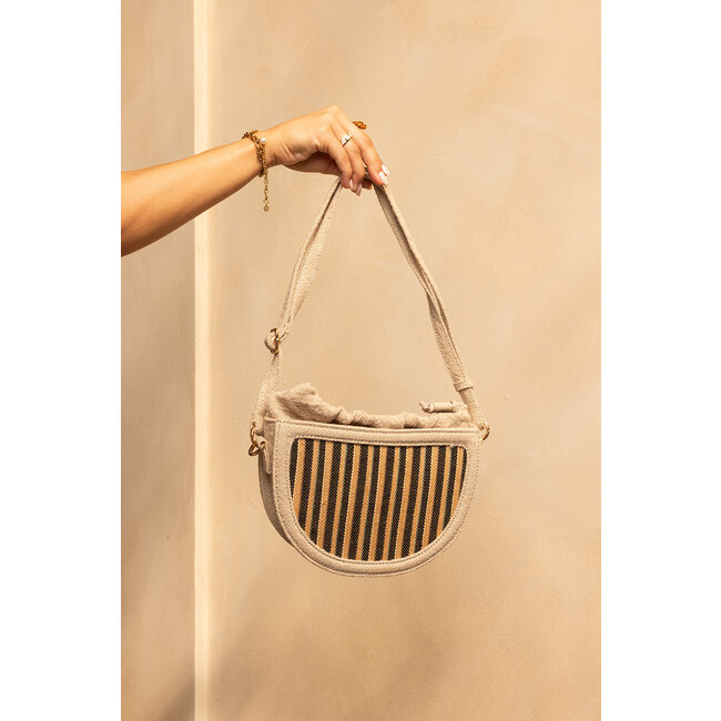 Juten Gestreepte Tas | Zwart/Beige