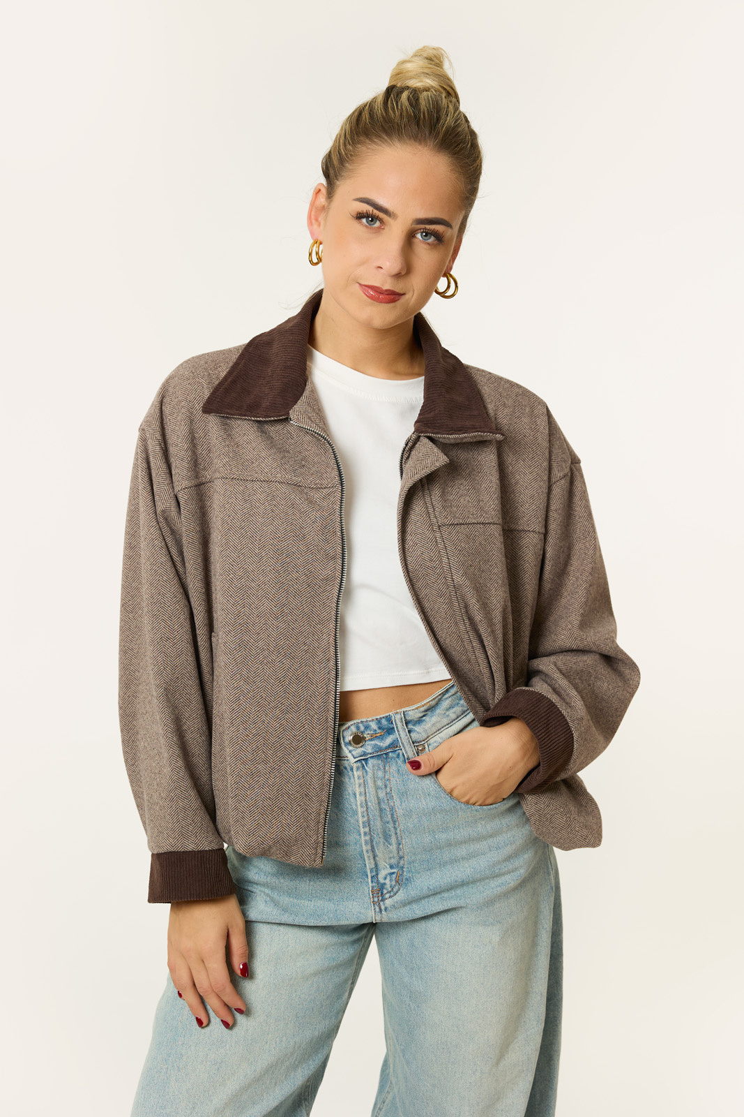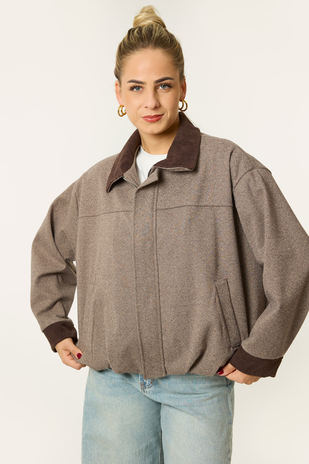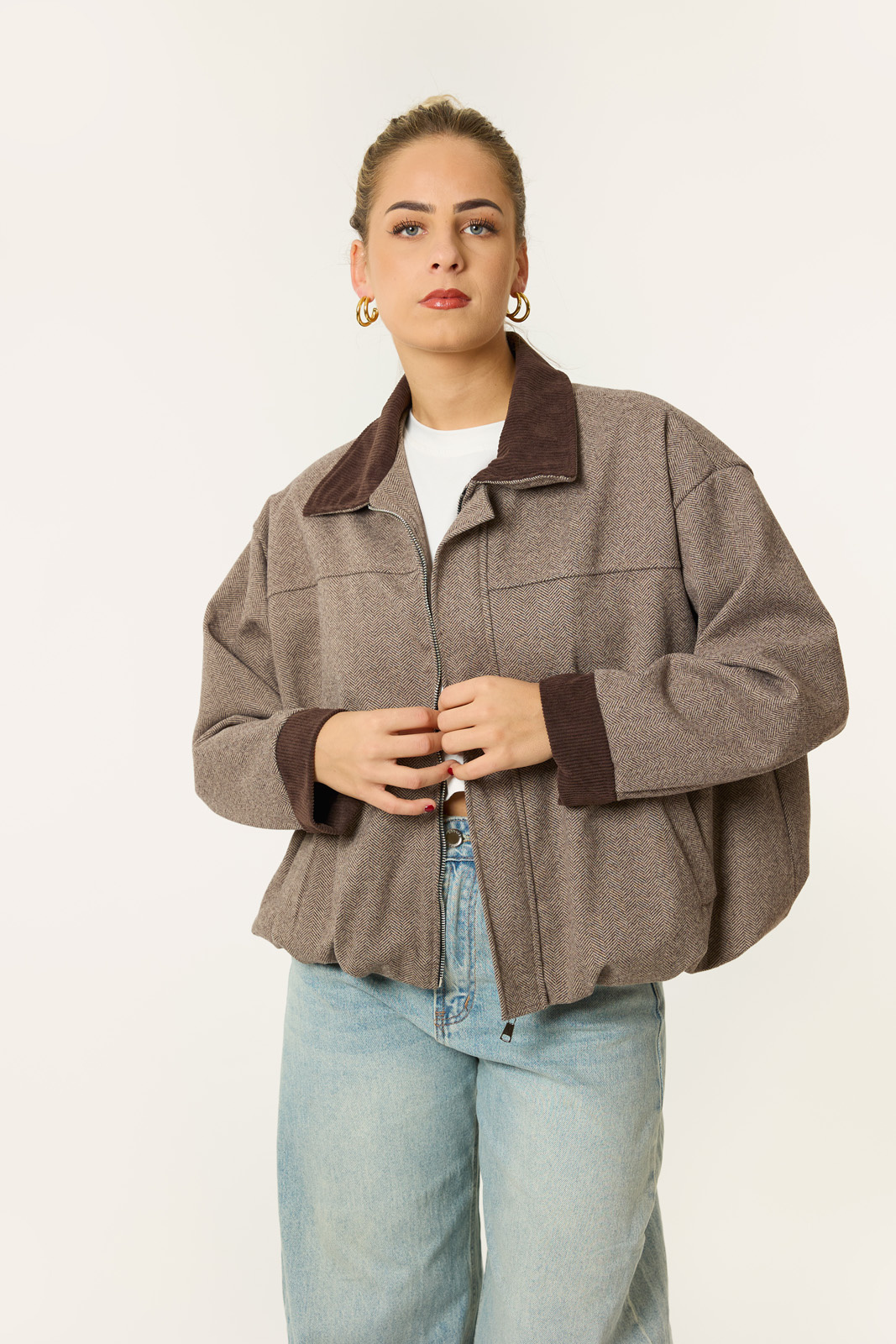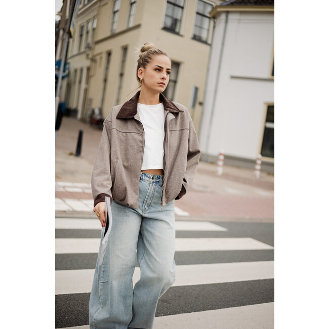 Deze bruine jas is dé perfecte layering piece voor het najaar. De combinatie van de zachte wol-look stof en de donkere/ bruine kraag geeft de jas een casual, maar stijlvolle uitstraling. Draag de jas open over een basic top en jeans voor een nonchalante herfstlook, of gooi hem over een knit op koudere dagen. Een fijne tussenjas die je makkelijk overal mee combineert!