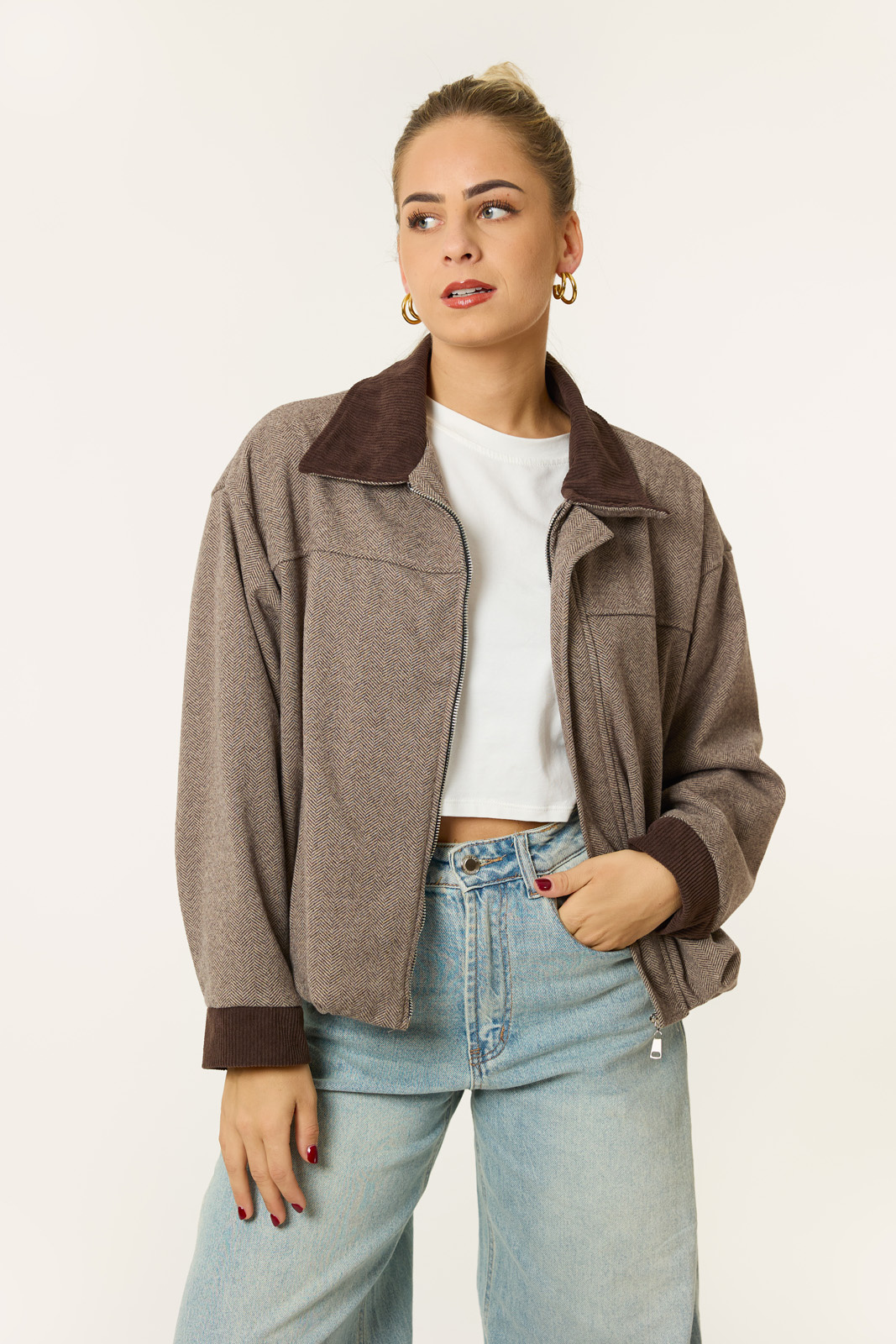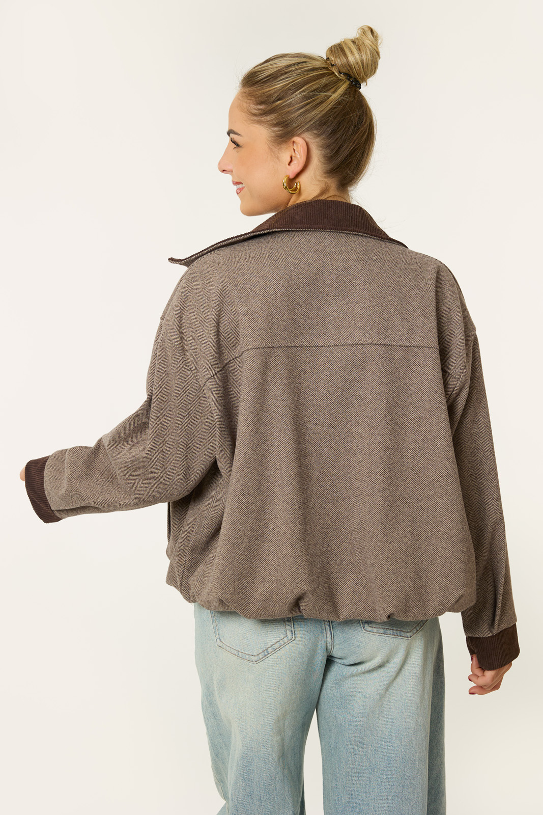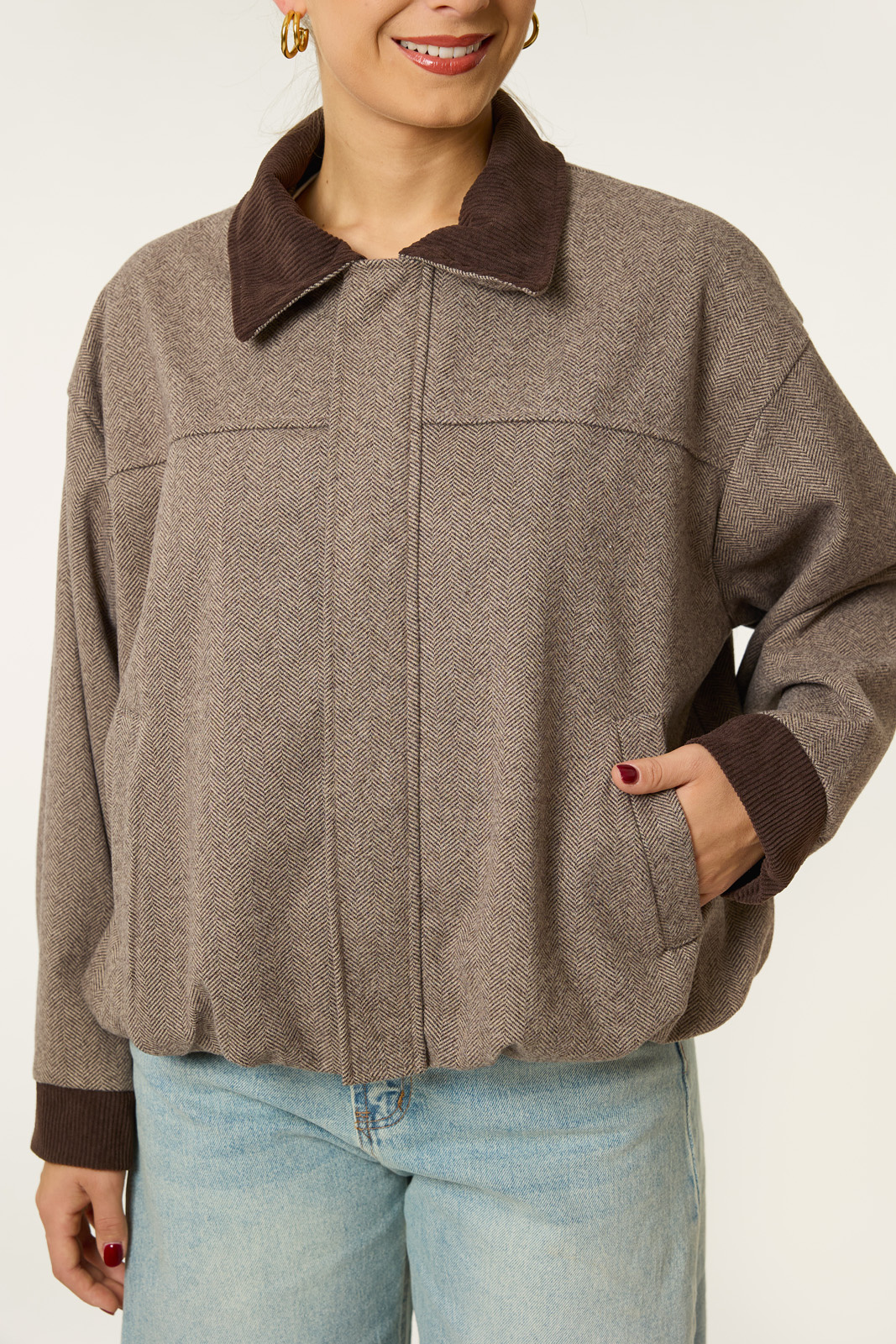 Deze bruine jas is dé perfecte layering piece voor het najaar. De combinatie van de zachte wol-look stof en de donkere/ bruine kraag geeft de jas een casual, maar stijlvolle uitstraling. Draag de jas open over een basic top en jeans voor een nonchalante herfstlook, of gooi hem over een knit op koudere dagen. Een fijne tussenjas die je makkelijk overal mee combineert!
