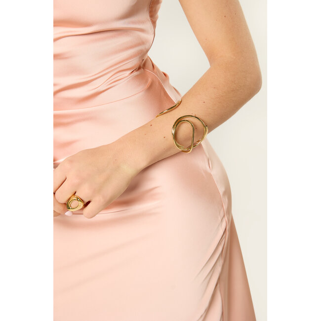 Deze gouden statement armband is zo’n sieraad dat je outfit meteen net wat meer geeft. De goudkleurige armbandheeft een opvallend en chunky vorm waardoor hij echt opvalt. Draag de statement armband goud dames solo voor een stijlvolle look of combineer hem met andere sieraden. Perfect bij een casual outfit, maar ook heel leuk bij een feestelijke look.