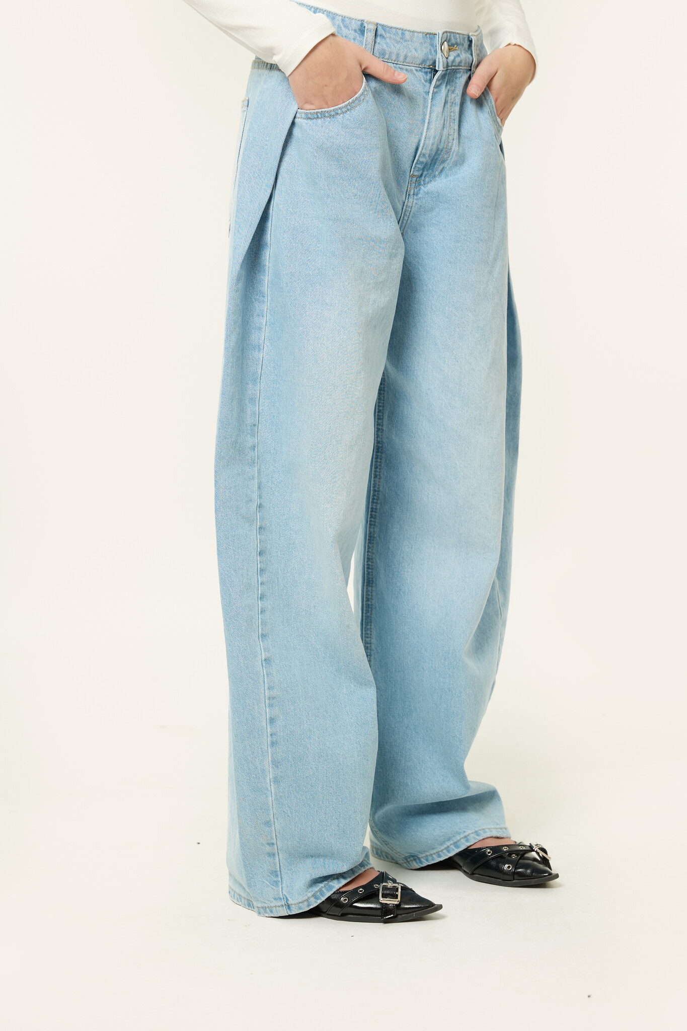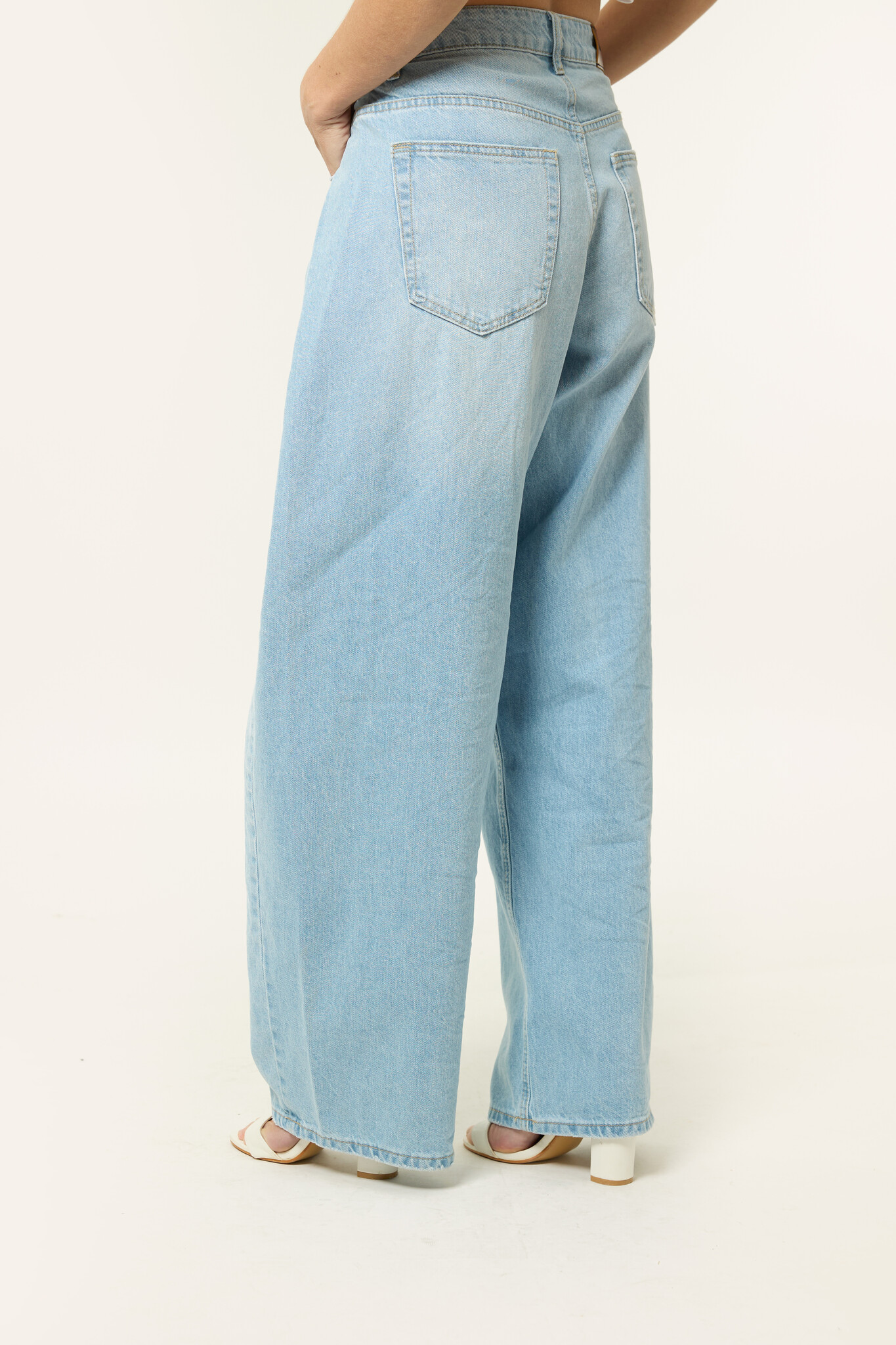 De lichtblauwe denim stof draagt prettig en maakt deze balloon fit denim broek geschikt voor dagelijks gebruik. Combineer de jeans met een basic top, blouse of trui voor een casual look, of style ‘m wat netter voor een verzorgde outfit. Een veelzijdige wide leg jeans met plooien die makkelijk te combineren is.