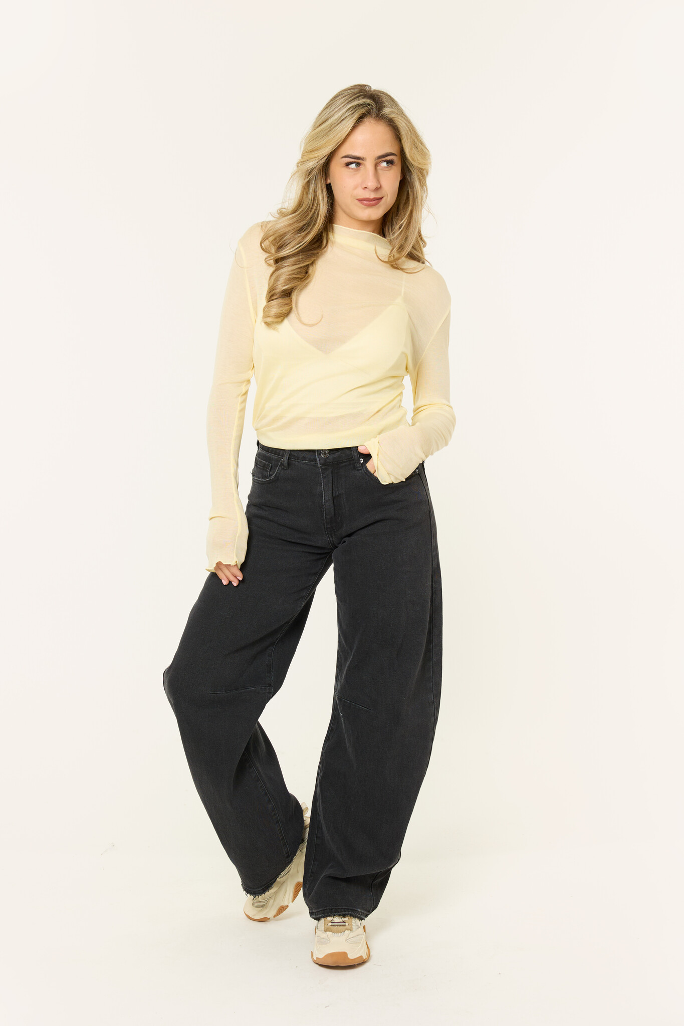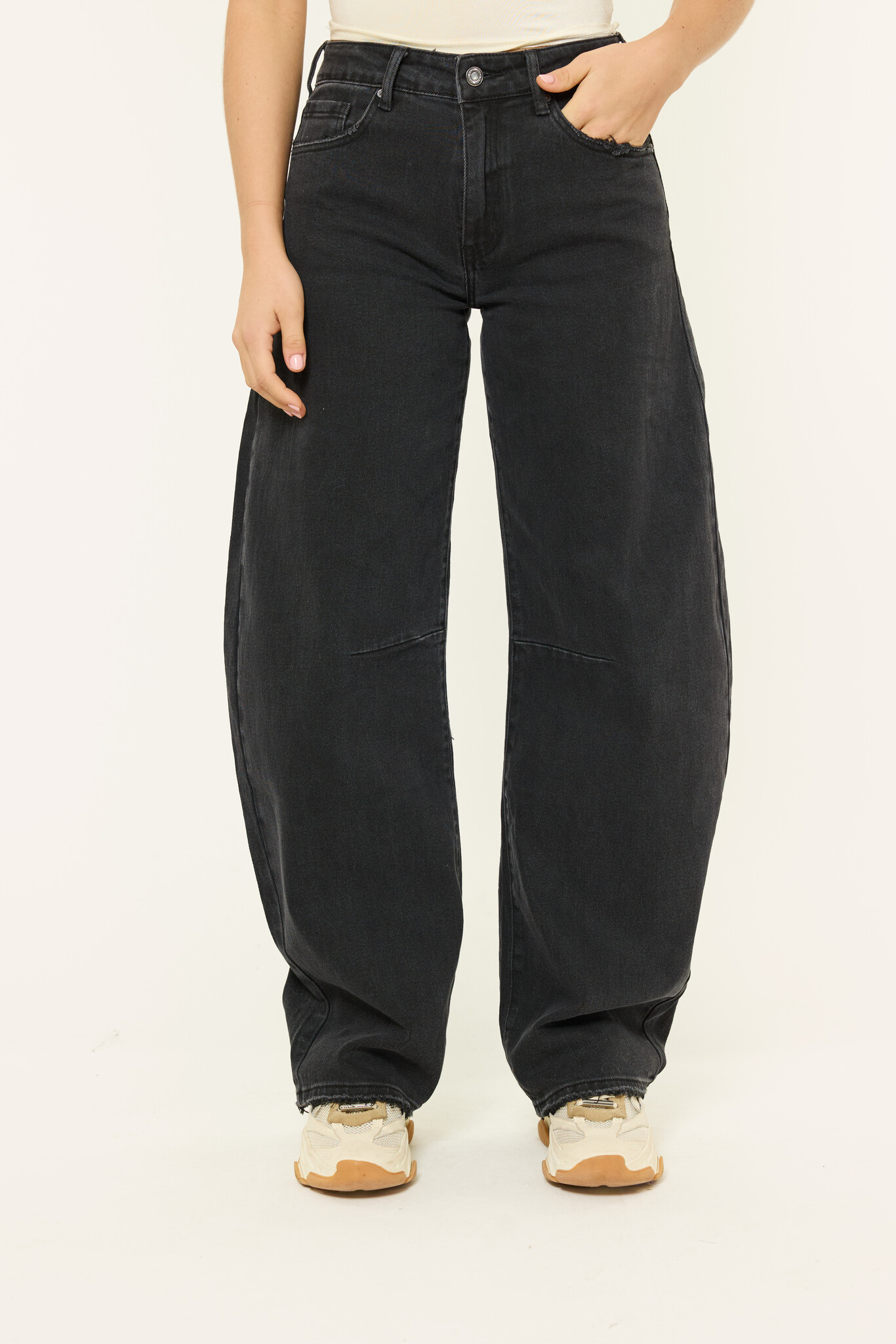 Deze zwarte balloon jeans is perfect voor een comfy maar stijlvolle look. De high waist broek zit mooi aangesloten, terwijl de losvallende pijpen zorgen voor die typische balloon fit, relaxed aan de bovenkant, iets smaller bij de enkels. De donkere wassing maakt de broek makkelijk te combineren met alles in je kast: van een oversized trui tot een leuke blouse. Een echte musthave als je houdt van die effortless, casual stijl.
