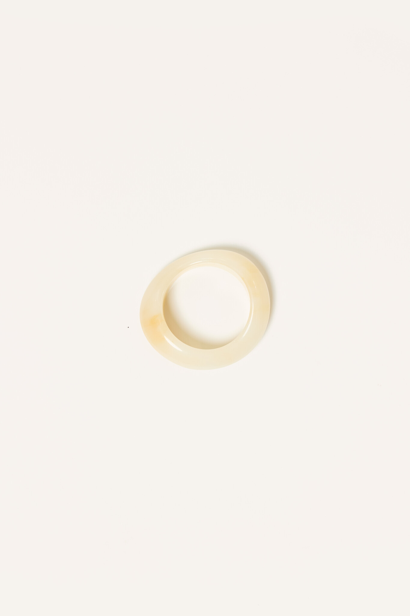 Deze crème bangle armband is een stijlvol accessoire dat je outfit meteen afmaakt. De armband heeft een mooie ronde vorm en een zachte crème kleur, waardoor hij makkelijk te combineren is. Draag de bangle armband los of combineer hem met meerdere armbanden voor een trendy look.