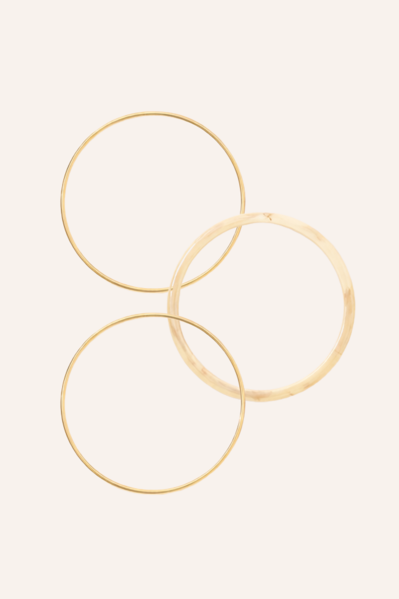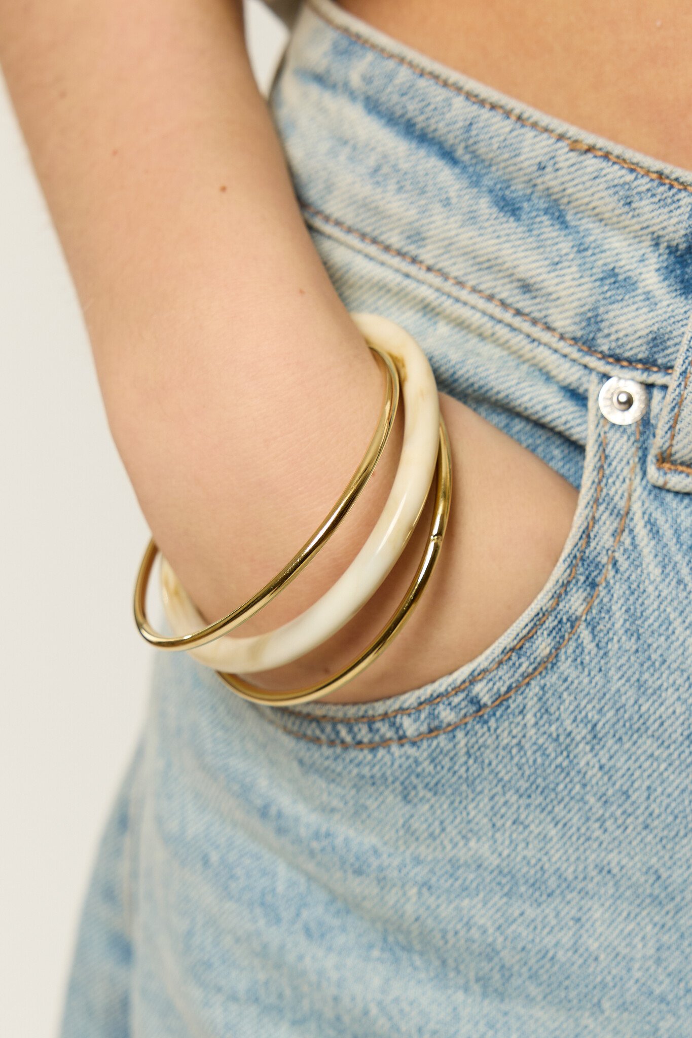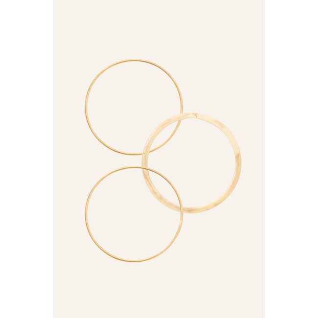 Deze bangle set geeft je outfit meteen een leuke upgrade. Door de mix van kleuren en materialen draag je ze makkelijk samen of juist los van elkaar. Perfect voor every day, maar ook leuk om je look net wat specialer te maken.