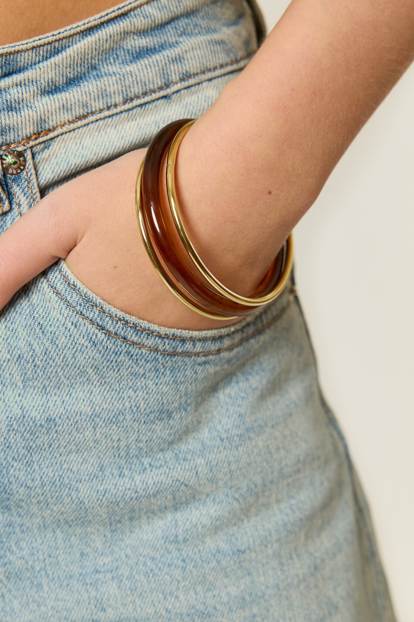 Beoordeel Bangle armband set goud | Bruin