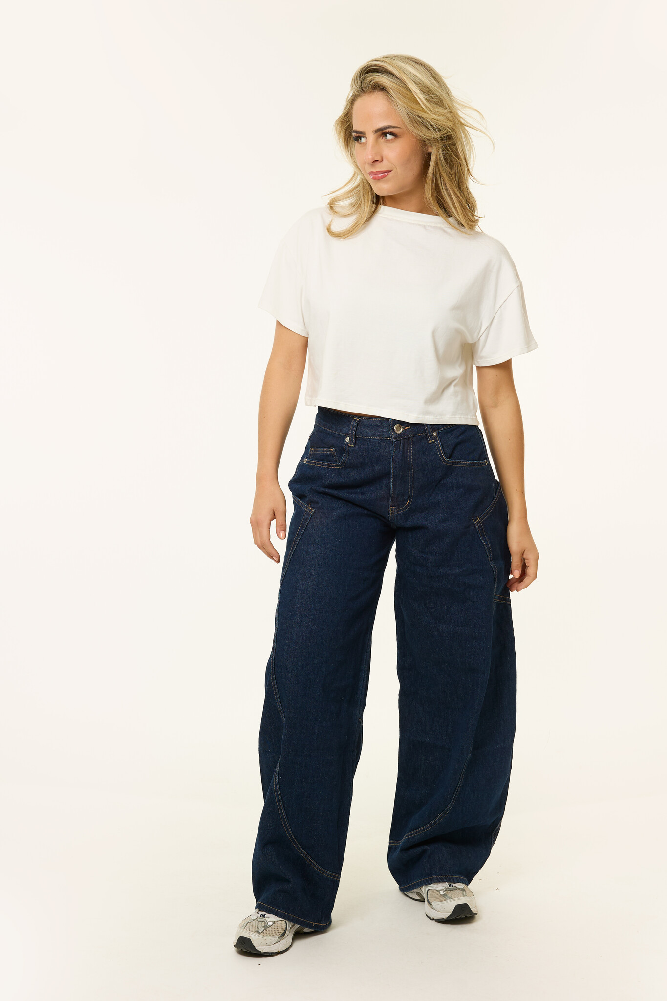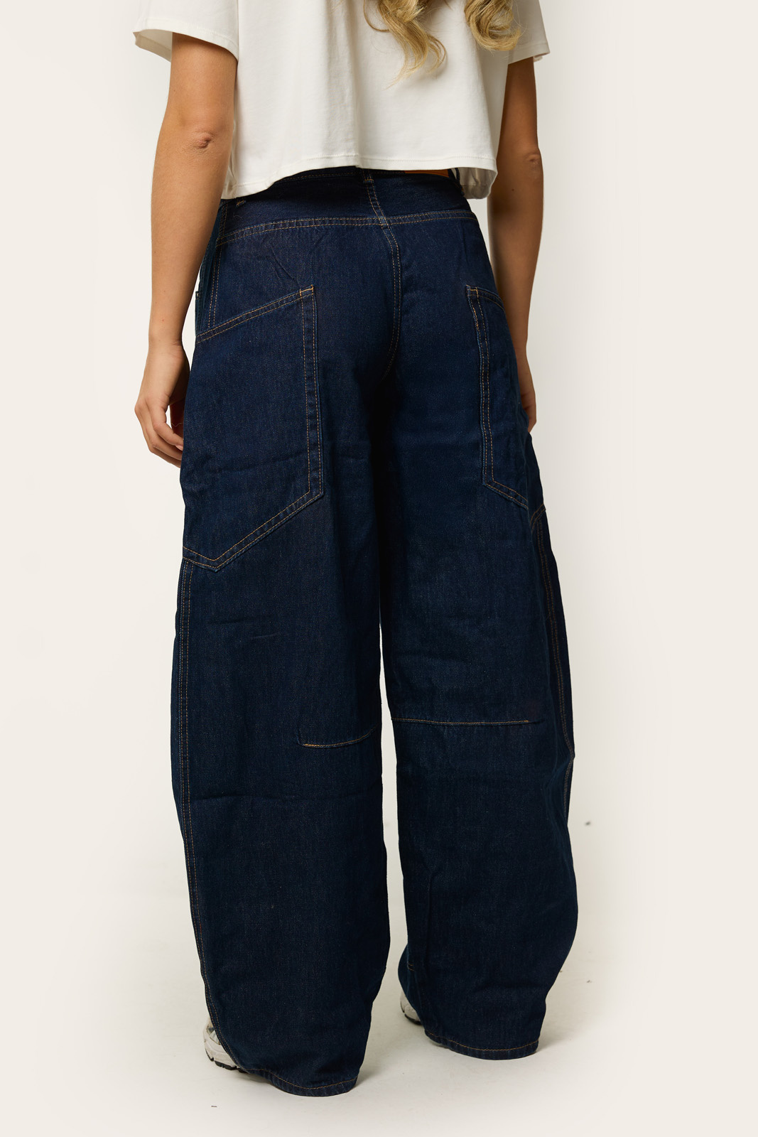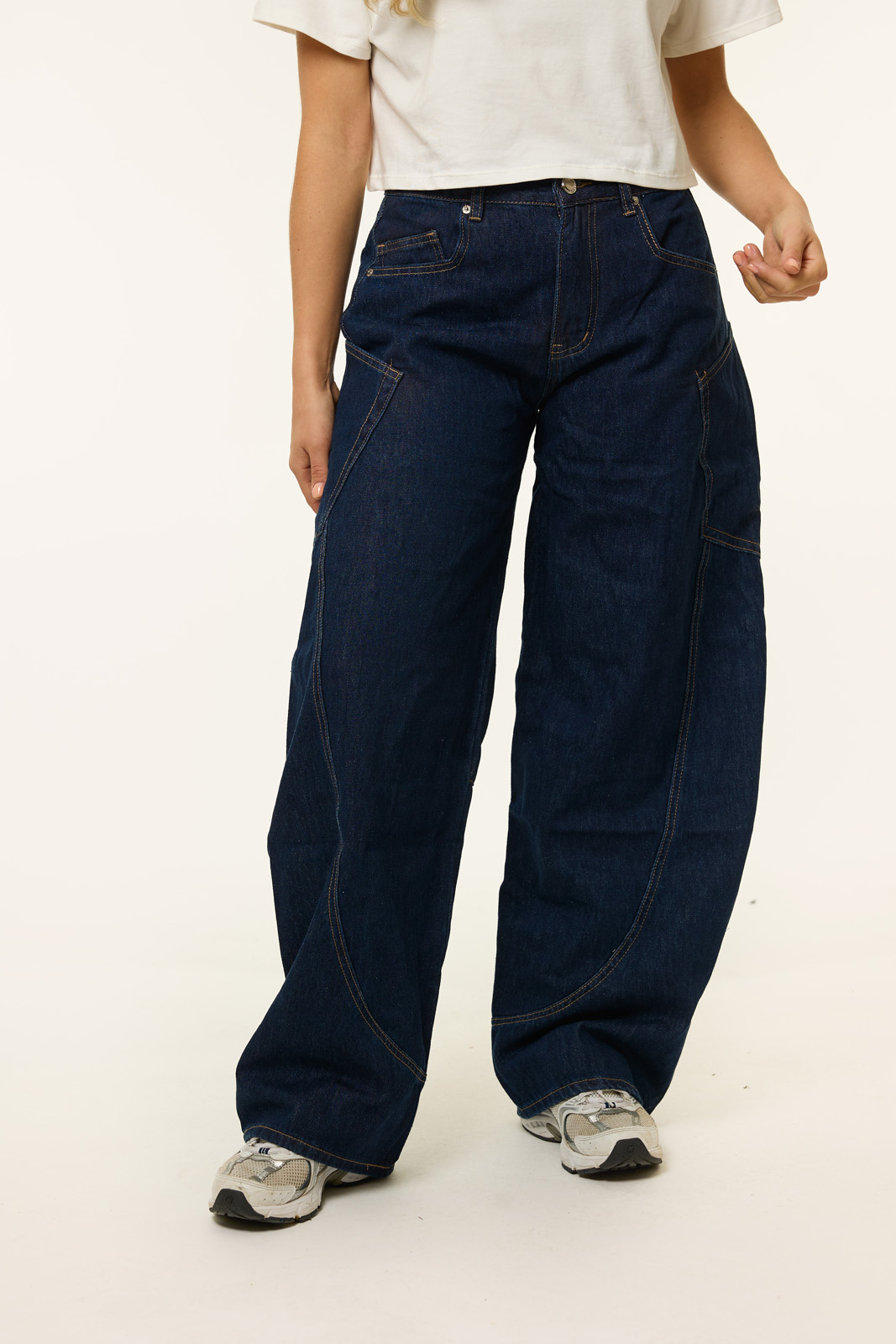 Deze donkerblauwe barrel jeans is dé jeans die je outfit meteen een trendy upgrade geeft. Met de wijde balloon fit en opvallende stiksels straalt de broek nonchalante coolness uit, terwijl de stevige denim kwaliteit zorgt dat de jeans lekker zit én lang mooi blijft. De hoge taille sluit mooi aan en maakt de barrel jeans super easy te combineren met een cropped top, knit of oversized blazer. Of je nu gaat voor casual met sneakers of een iets meer dressed look met laarsjes: deze barrel jeans is een echte musthave voor dit seizoen.