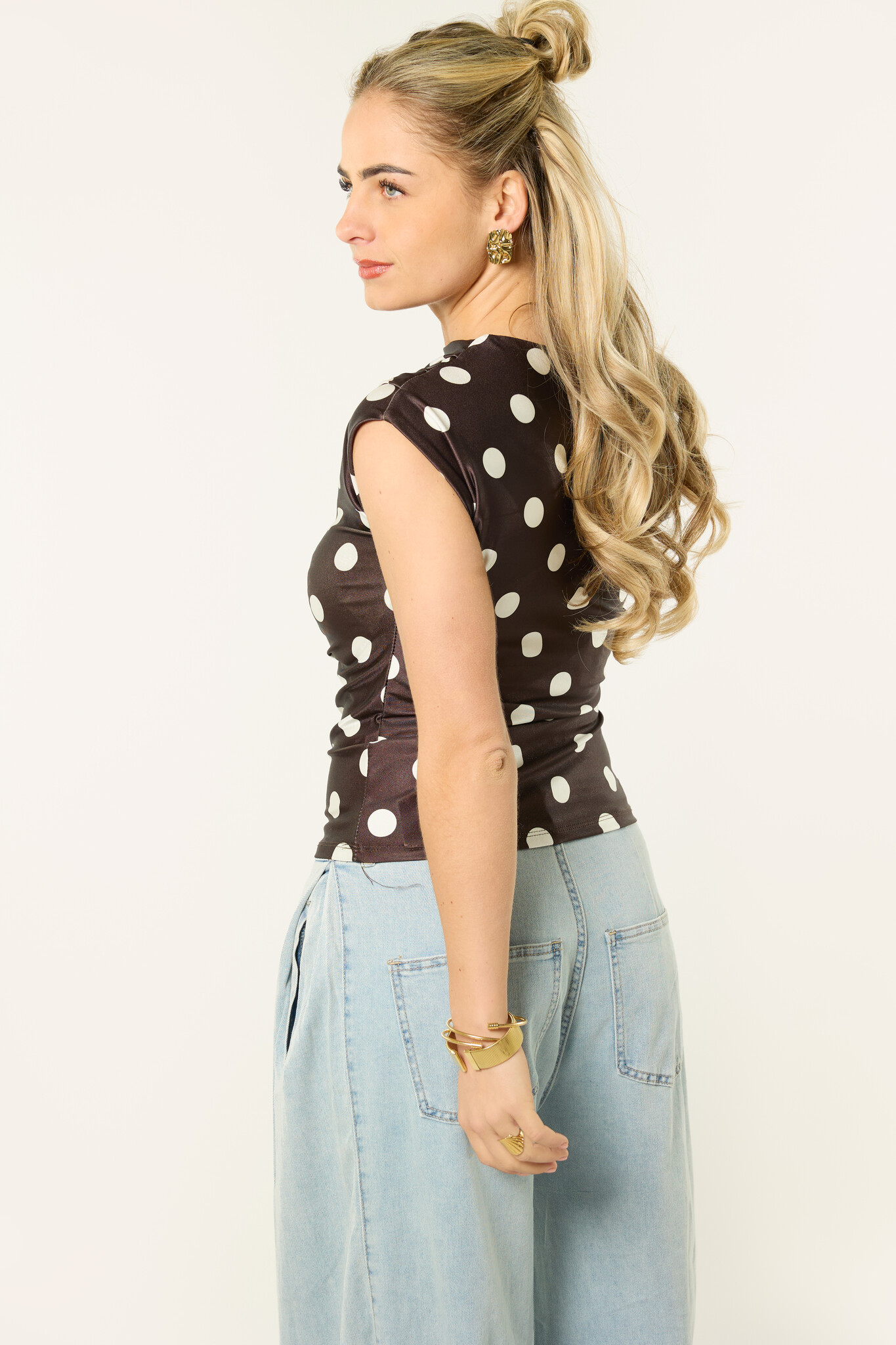 Combineer deze stippen top met een jeans, rok of pantalon voor een leuke outfit. Perfect voor een etentje, een festival of een gezellige voorjaars- of zomerdag