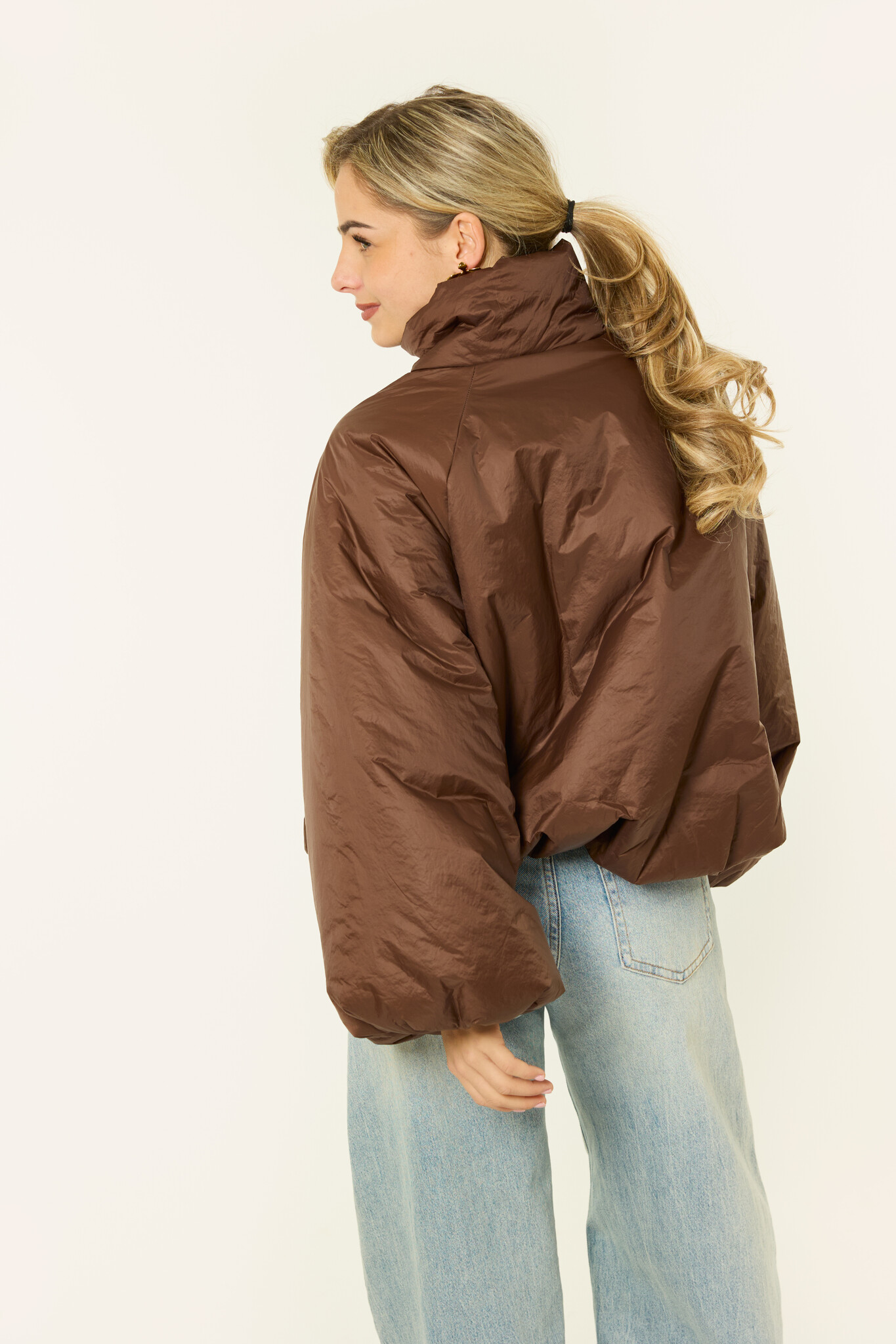 Deze korte dames puffer jas in het bruin is perfect voor frisse dagen waarop comfort en stijl samenkomen. De puffy fit en het oversized model zorgen voor een moderne look die makkelijk te combineren is met elke outfit. Deze groene dames bomberjas is ideaal als tussenjas of lichte winterjas en geschikt voor dagelijks gebruik. Een fijne, comfortabele jas voor wie houdt van een trendy dames jas die zowel praktisch als modieus is.