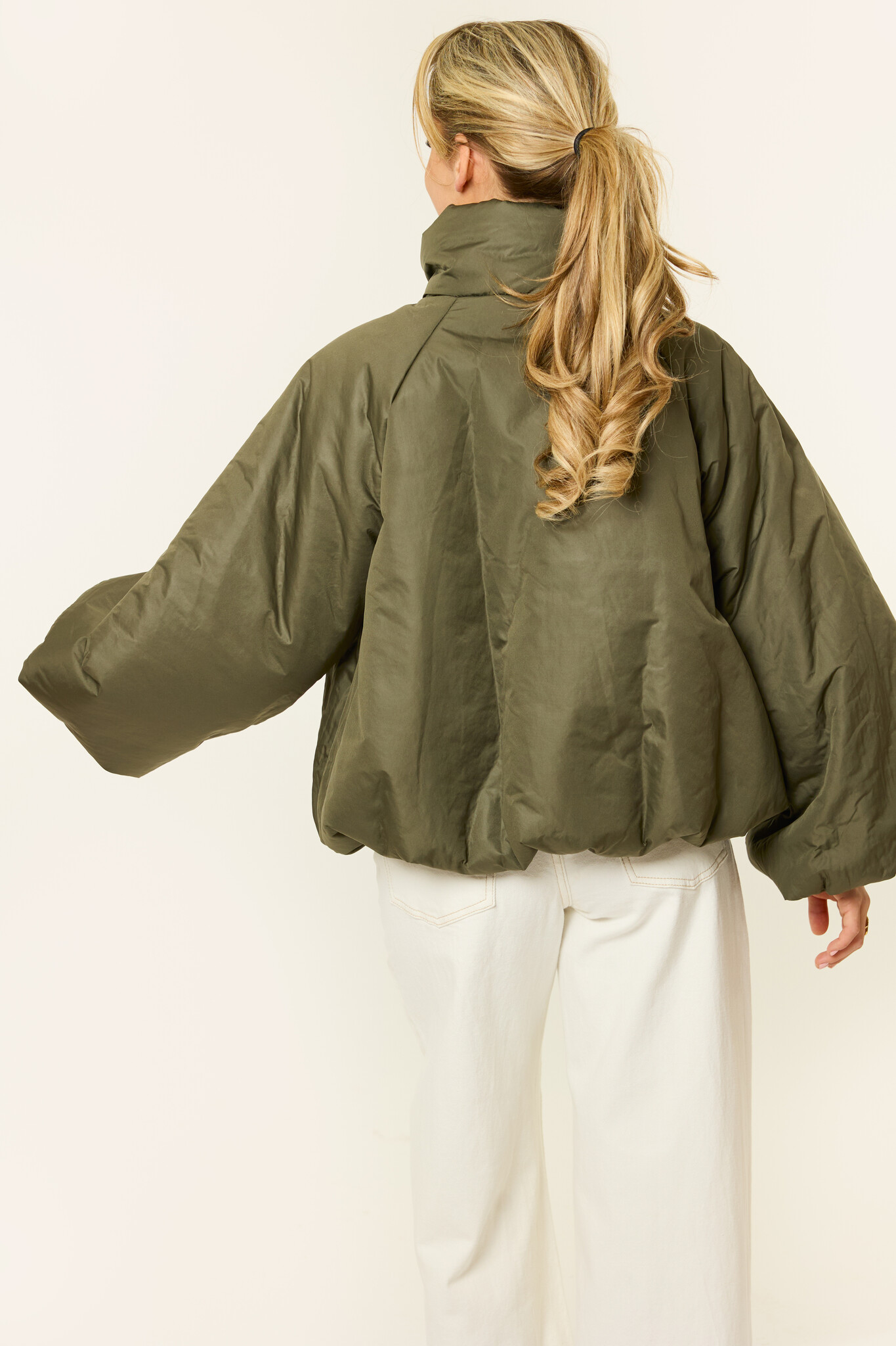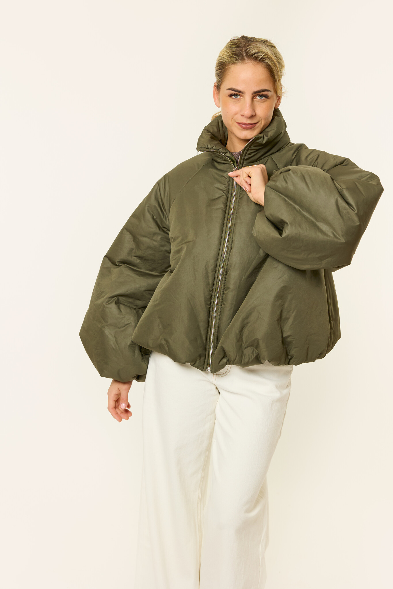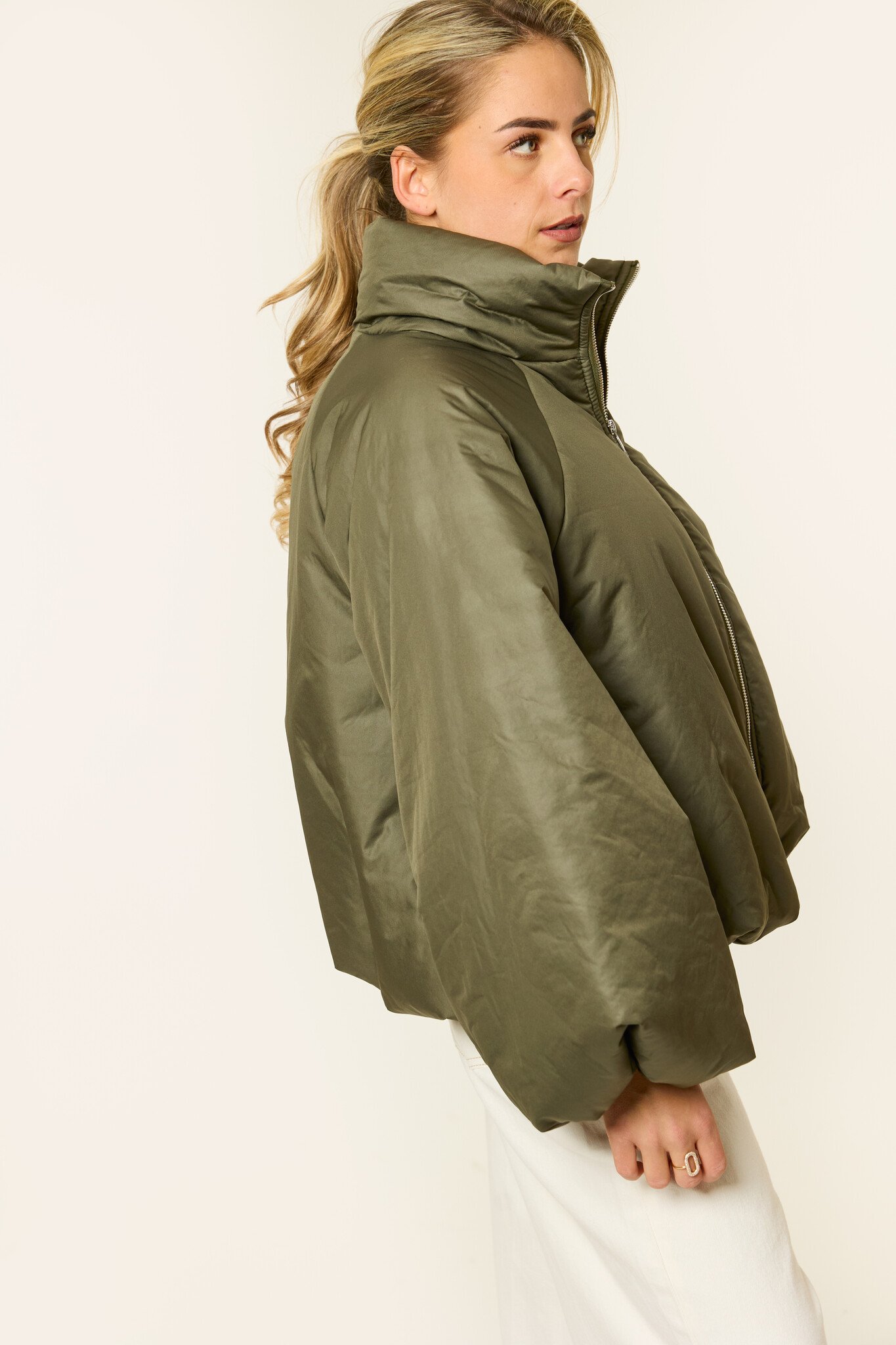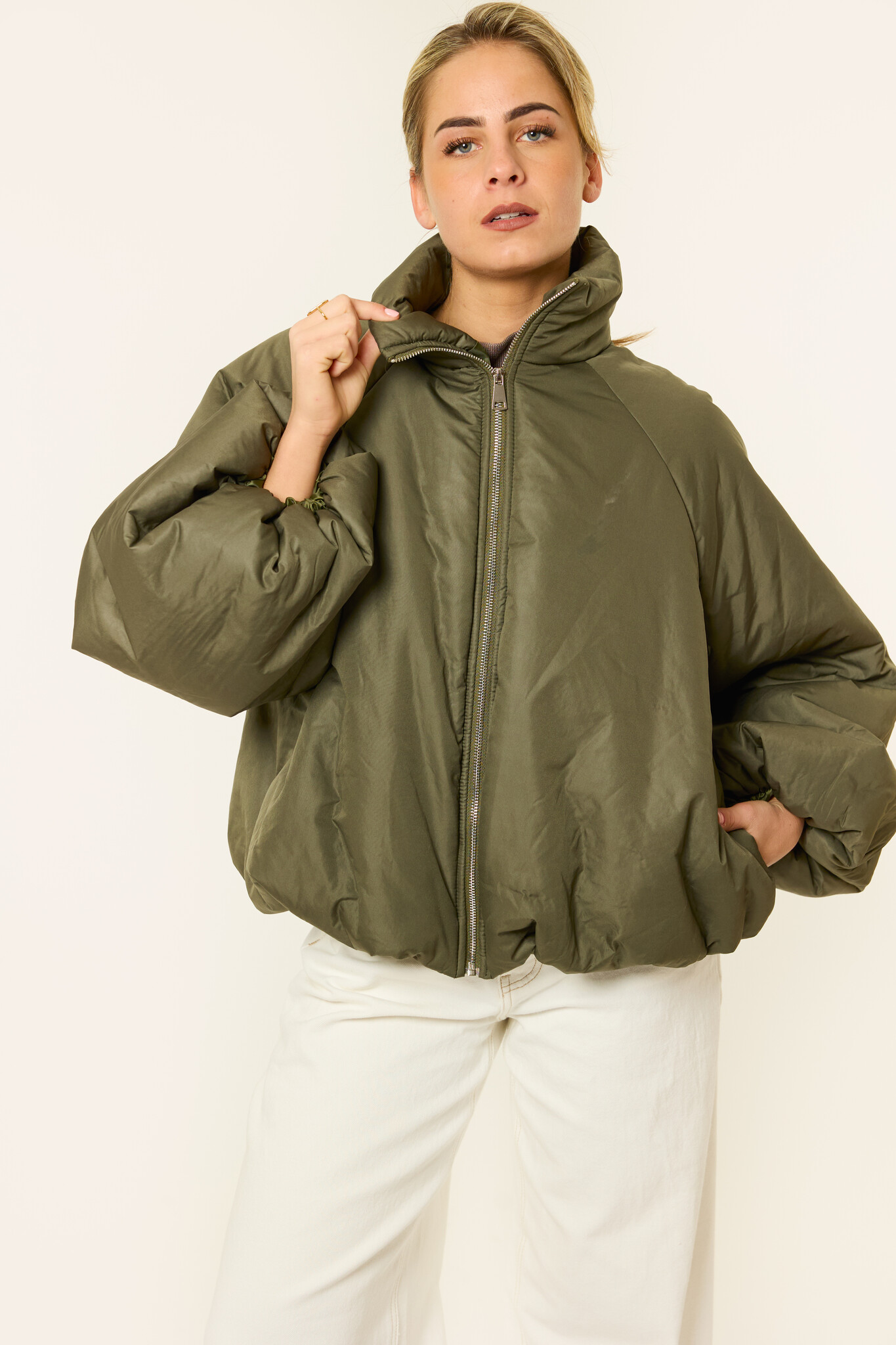 Deze korte dames puffer jas in het groen is perfect voor frisse dagen waarop comfort en stijl samenkomen. De puffy fit en het oversized model zorgen voor een moderne look die makkelijk te combineren is met elke outfit. Deze groene dames bomberjas is ideaal als tussenjas of lichte winterjas en geschikt voor dagelijks gebruik. Een fijne, comfortabele jas voor wie houdt van een trendy dames jas die zowel praktisch als modieus is.
