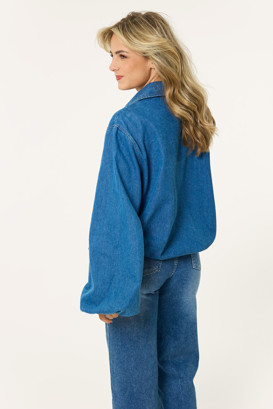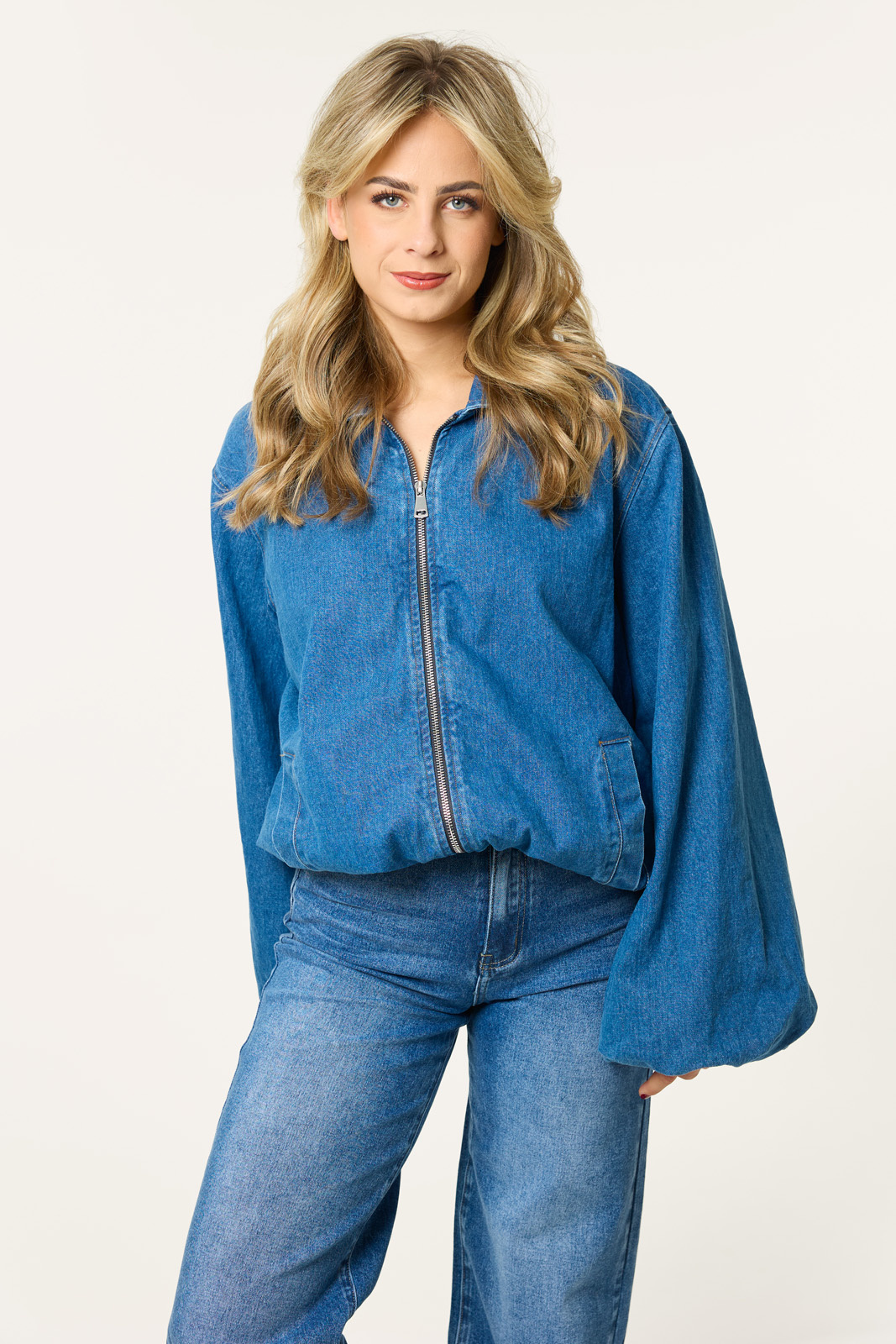 Deze denim jas is een echte statement piece in jouw garderobe. Met zijn oversized fit, ballonmouwen en stevige ritssluiting heeft deze jas die nonchalante coole vibe waar we van houden. De elastische zoom zorgt voor een fun pasvorm en het stevige denim maakt hem perfect voor dagelijks gebruik. Draag de jacket met een jeans voor een coole denim-on-denim look of over een jurkje.