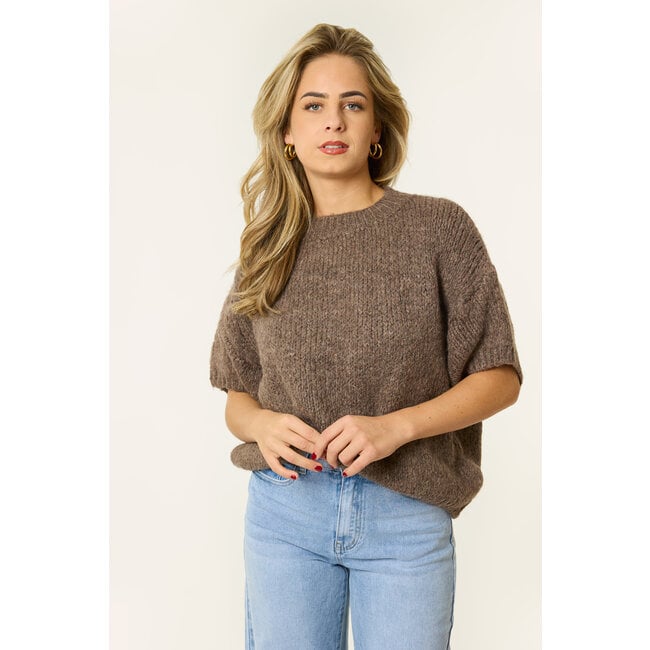 Deze bruine trui met korte mouwen is een echte essential voor het najaar. De zachte knit en losse pasvorm zorgen voor ultiem comfort, terwijl de warme bruine kleur helemaal aansluit bij de herfsttrends. Perfect om casual te dragen met een jeans, maar ook leuk om te stylen met een rok en laarzen. Een veelzijdige bruine dames trui die jouw garderobe compleet maakt.