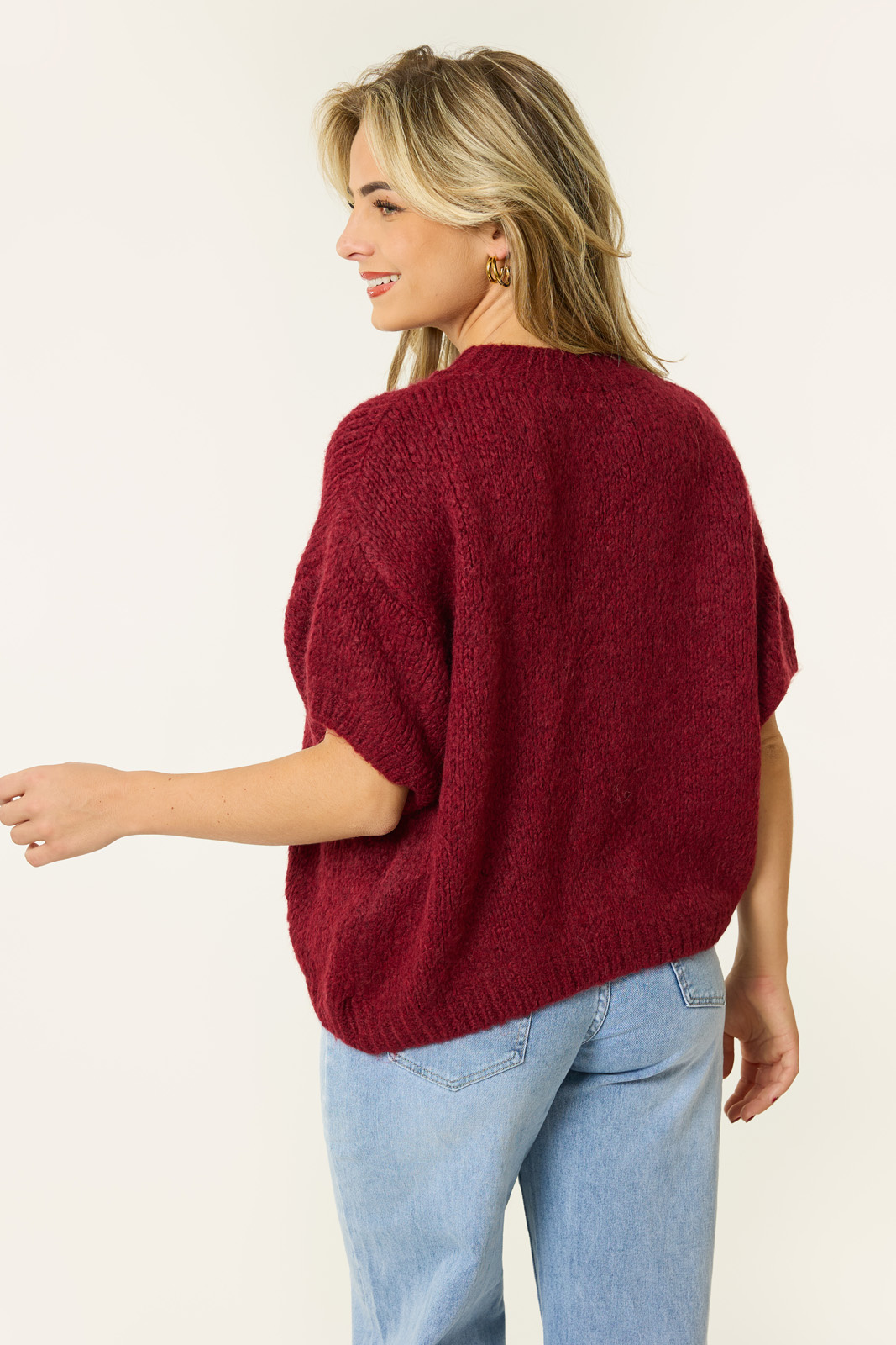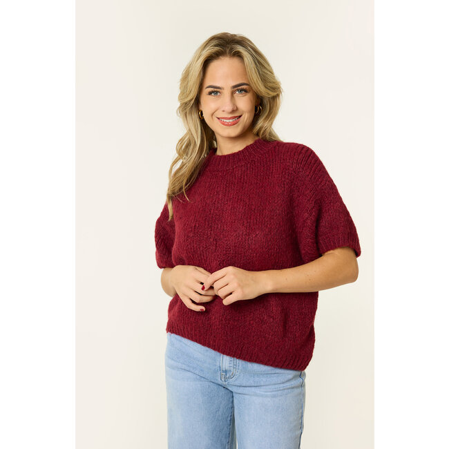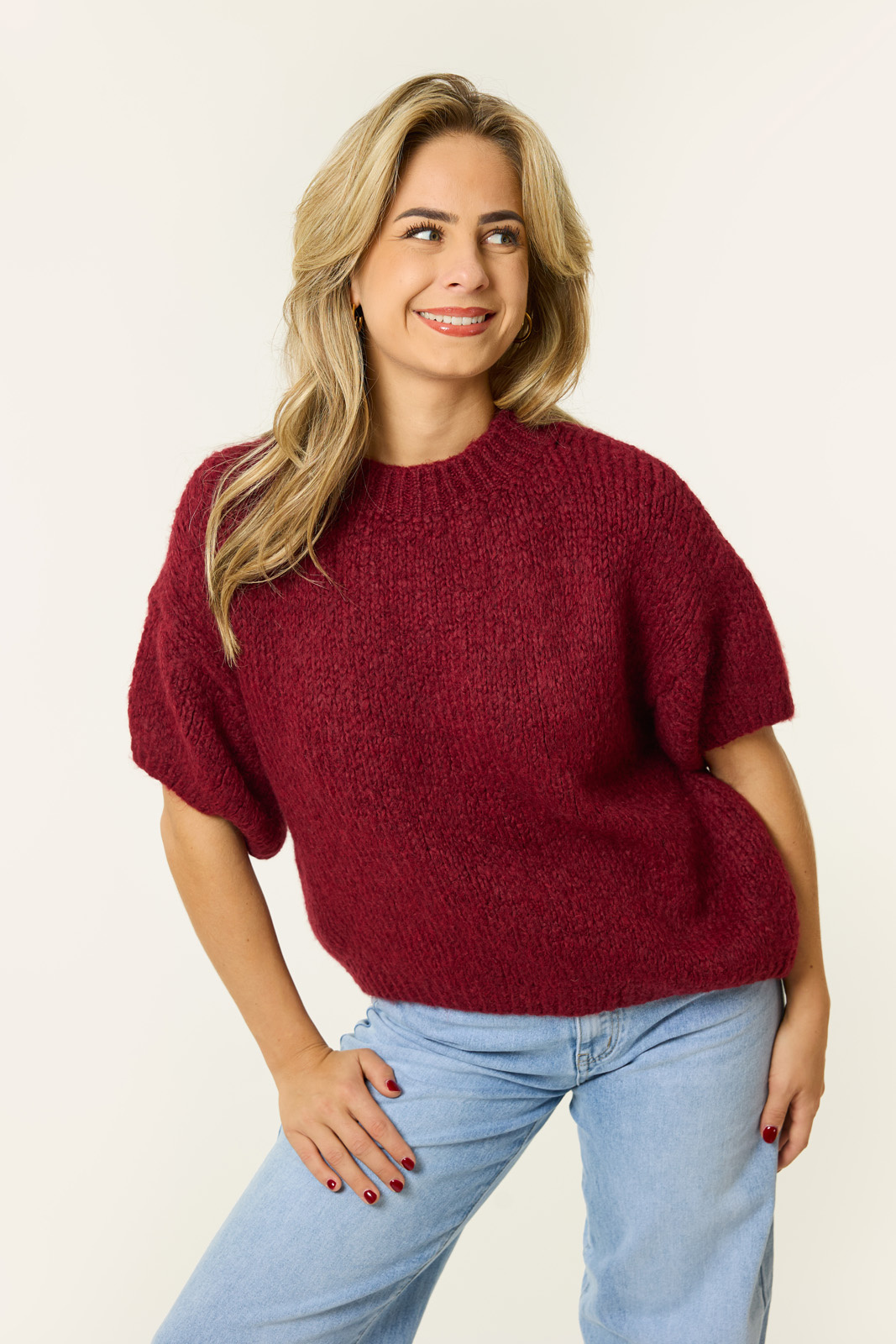 Deze bordeauxrode trui met korte mouwen is de perfecte mix van comfy en trendy. De losse pasvorm geeft een relaxte vibe, terwijl de warme kleur ideaal is voor het najaar. Je draagt deze trui voor dames makkelijk met een jeans en sneakers voor een casual look, of combineer de knit met een rok en laarsjes voor een meer vrouwelijke stijl. Perfect voor je nieuwe autumn wardrobe.