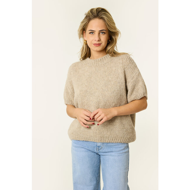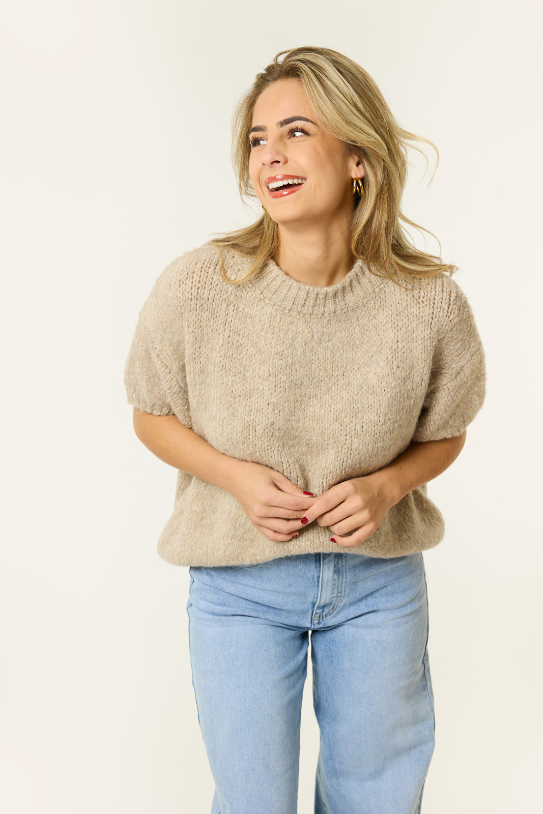 Deze beige trui met korte mouwen is een echte basic die je eindeloos kunt combineren. De losse pasvorm en zachte knit maken de top super comfortabel, terwijl de neutrale kleur perfect past bij elke outfit. Of je deze trui voor dames nu draagt met een jeans voor een casual look of styled met een rok en laarzen voor het najaar, hij is altijd een goede keuze. Een tijdloze knit die niet mag ontbreken in jouw autumn garderobe.