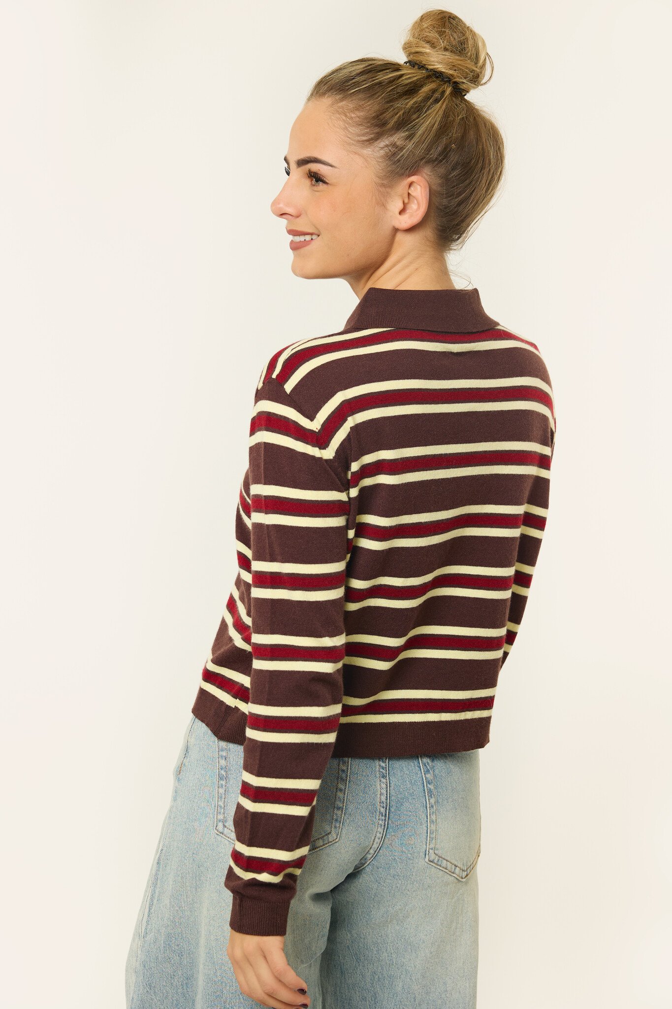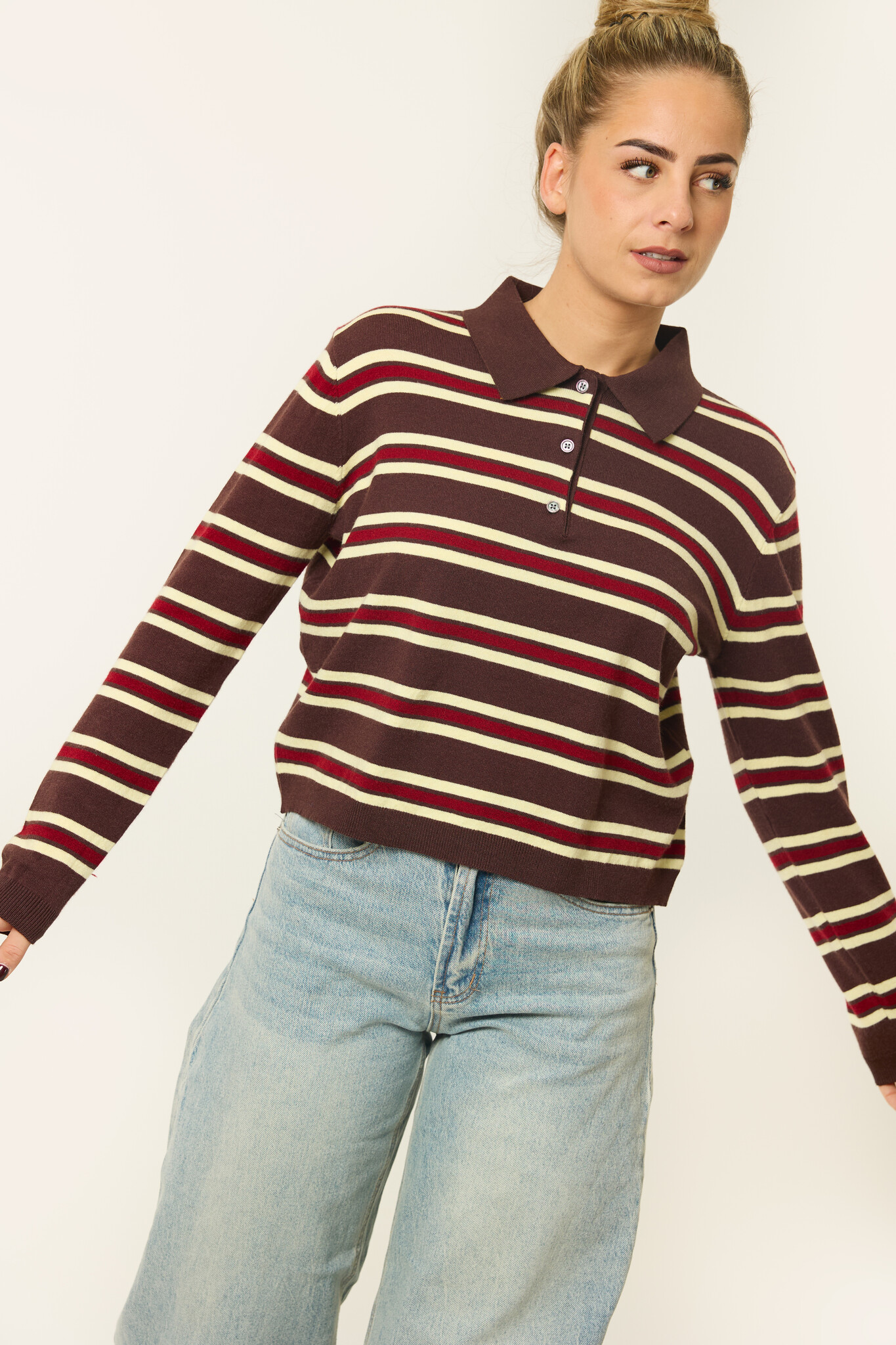 SKU: Chloe gestreepte polo longsleeve | Bruin/burgundy