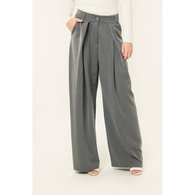 Deze grijze wide leg pantalon geeft je outfit meteen een vrouwelijke en stijlvolle look. De plooien aan de voorkant en de wijde pijpen zorgen voor een mooie pasvorm en een trendy look, terwijl de broek comfortabel draagt.