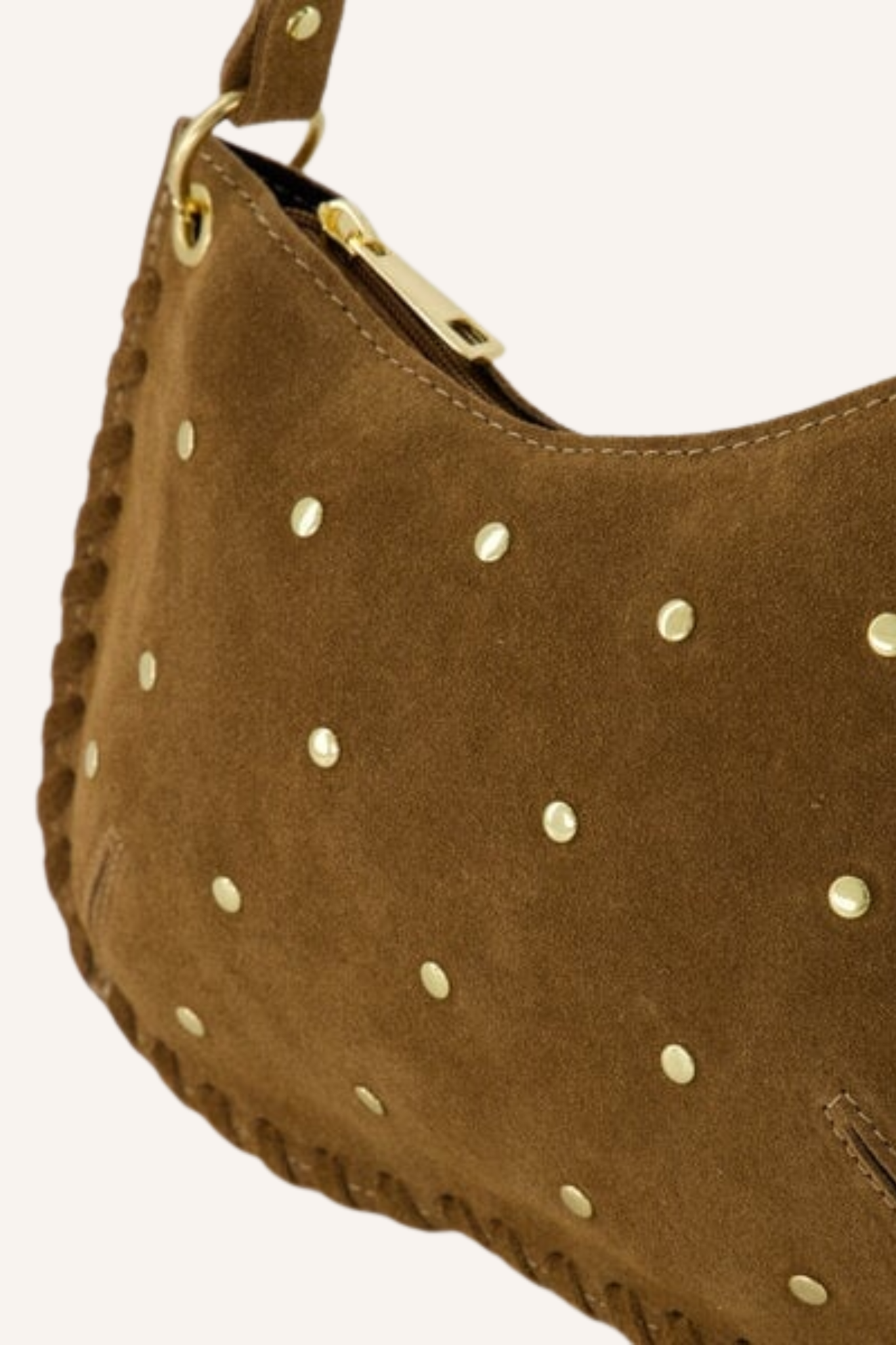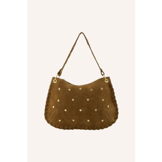 Deze taupe handtas is de perfecte finishing touch voor elke outfit. De gouden studs geven de tas een stoere maar stijlvolle uitstraling, terwijl het compacte model ideaal is voor dagelijks gebruik of een avondje uit. De tas heeft genoeg ruimte voor je belangrijke essentials. Of je de tas draagt bij een jeans en blazer combo of een little black dress, deze tas maakt je look af.