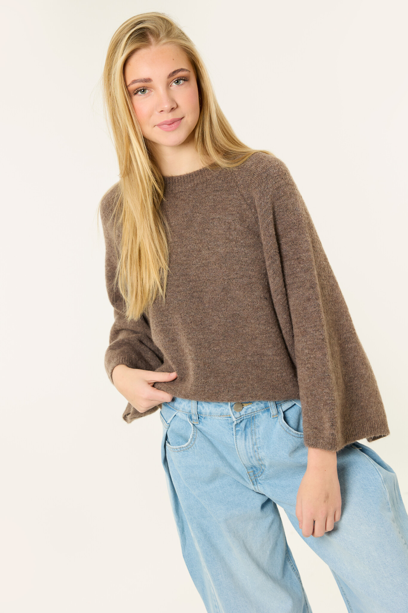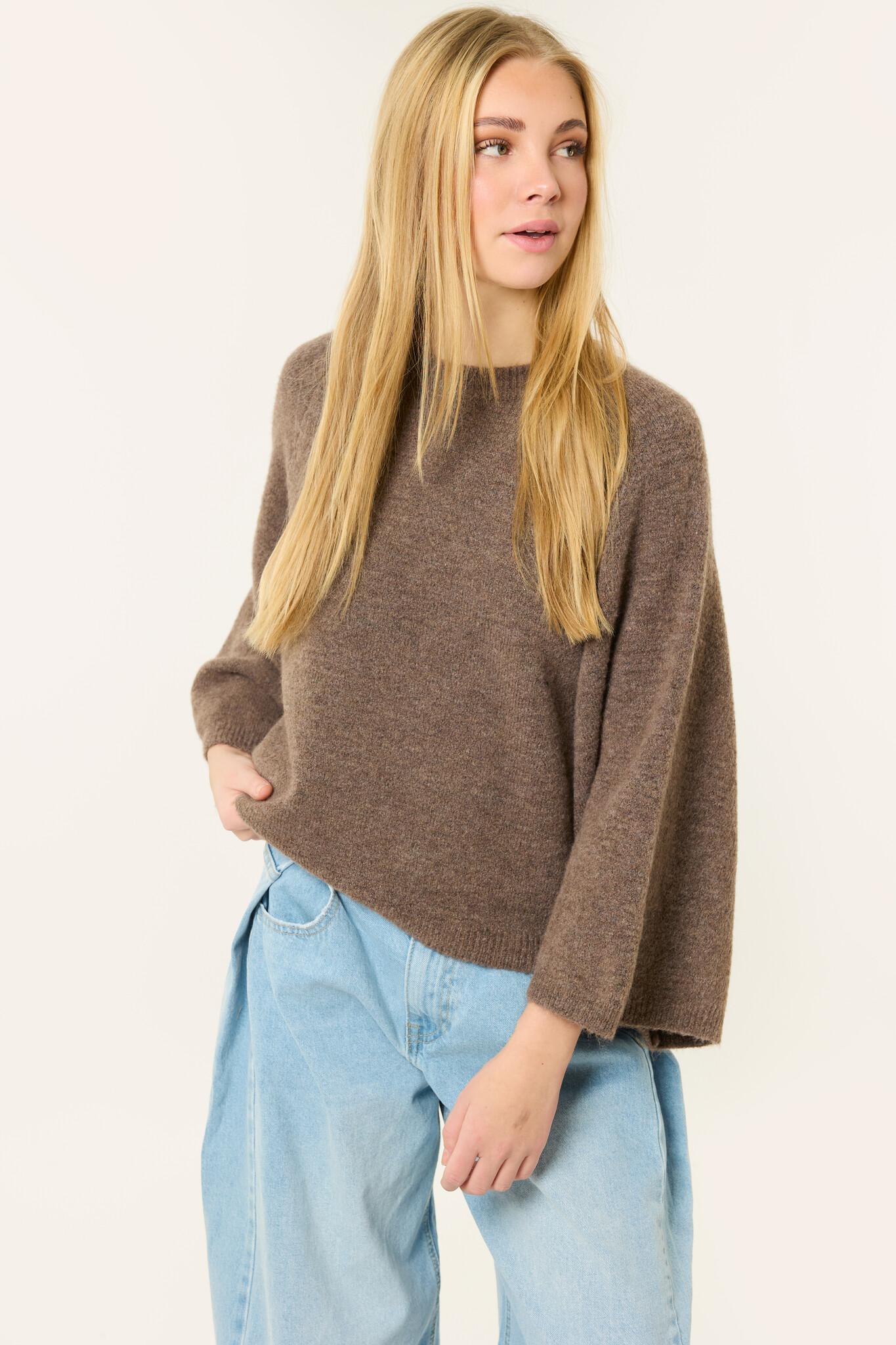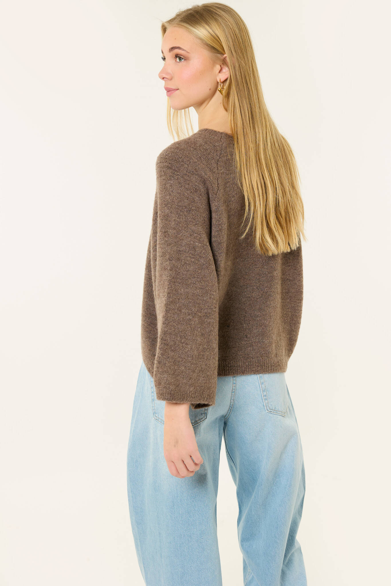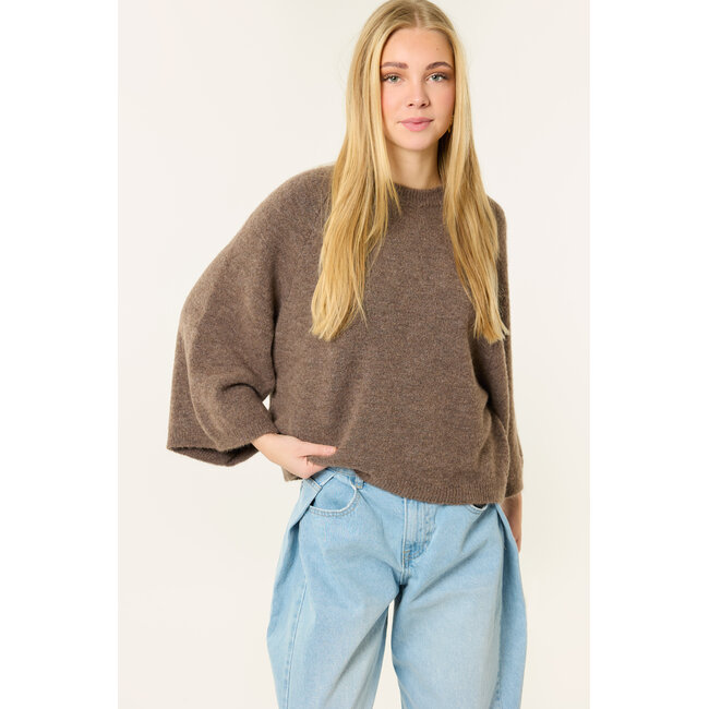 Deze bruine gebreide trui is een fijn item voor elke dag. De trui is gemaakt van een zachte stof en heeft een comfortabele, losse pasvorm. De driekwart mouwen geven de trui een trendy uitstraling en maken ‘m makkelijk te combineren.