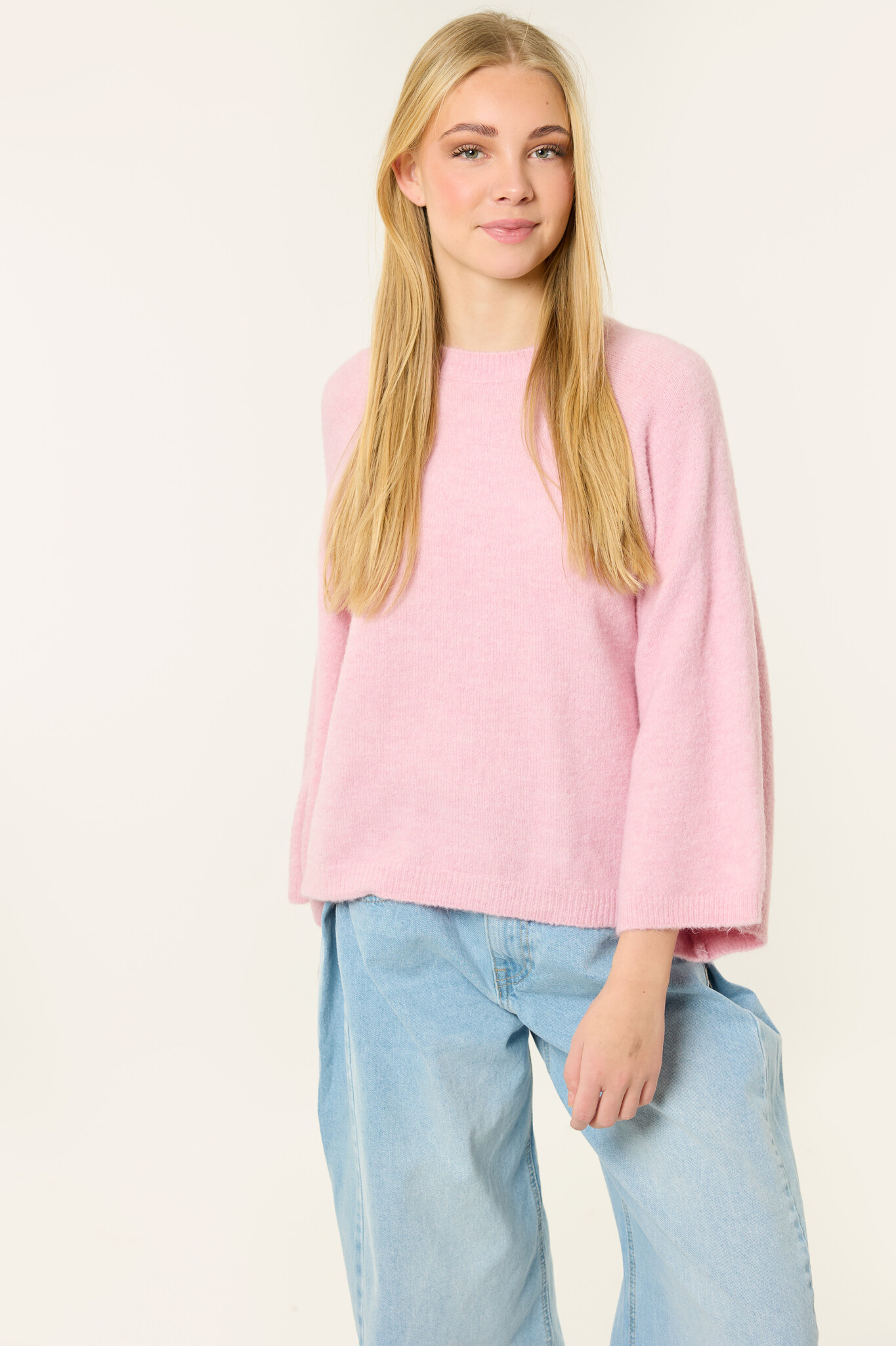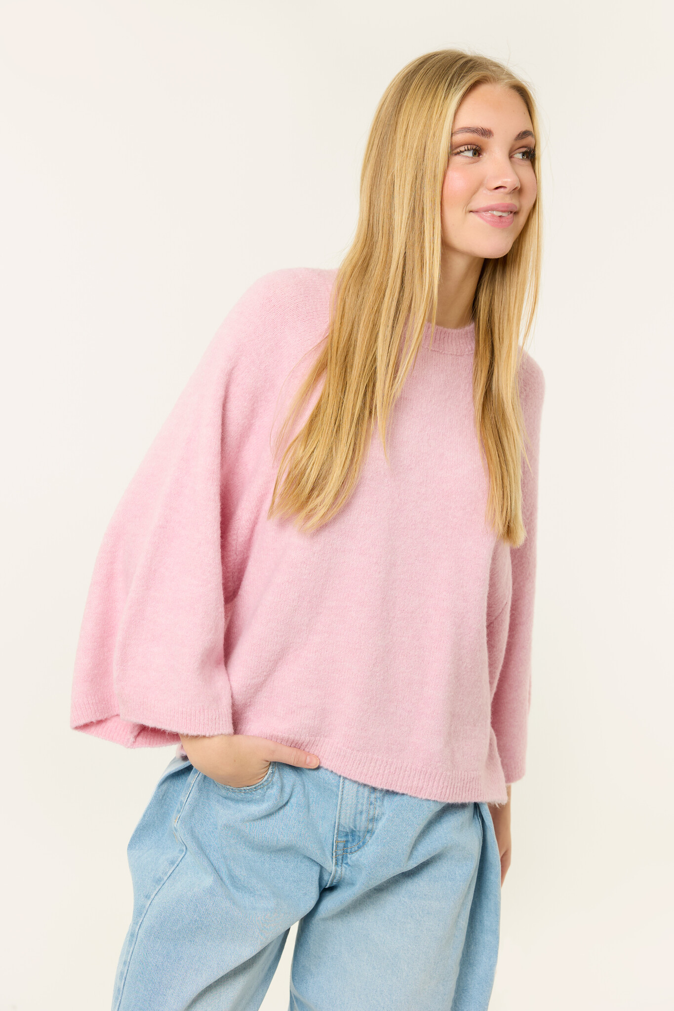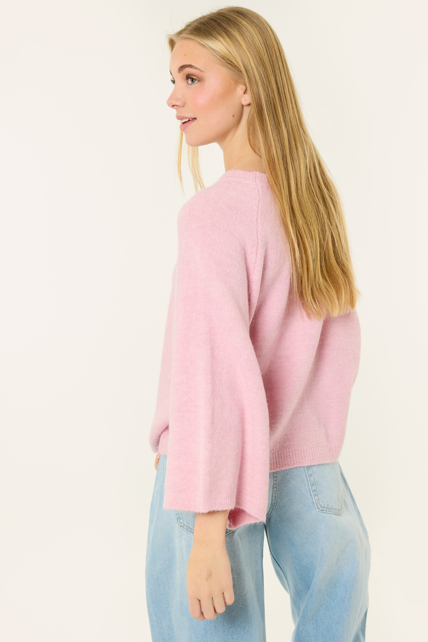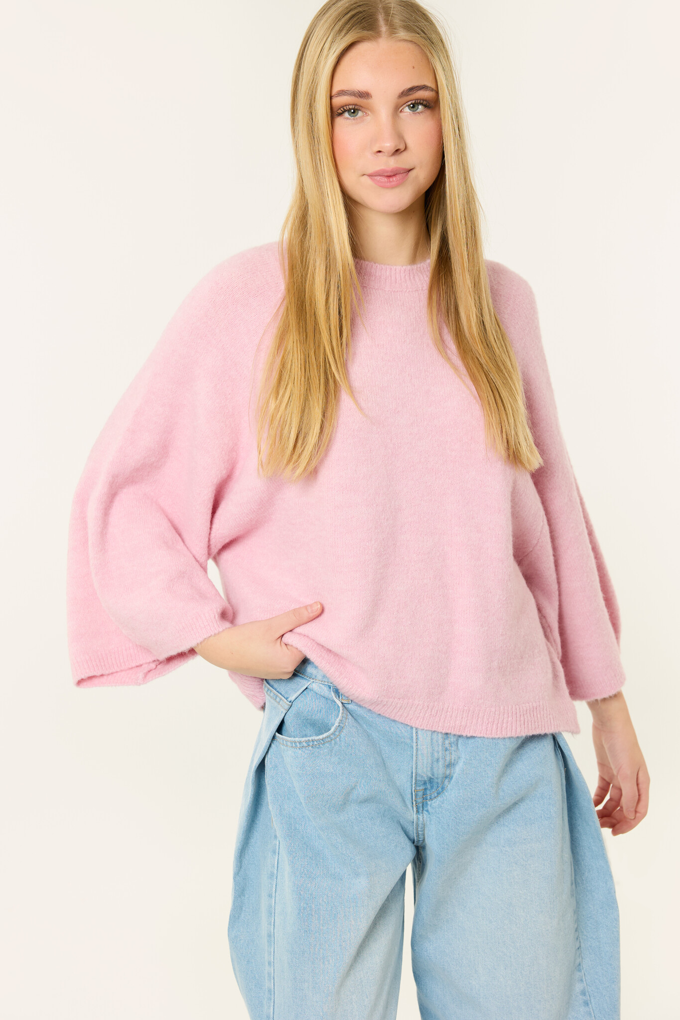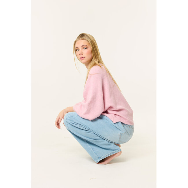 Deze roze gebreide trui is een fijn item voor elke dag. De trui is gemaakt van een zachte stof en heeft een comfortabele, losse pasvorm. De driekwart mouwen geven de trui een trendy uitstraling en maken ‘m makkelijk te combineren.
