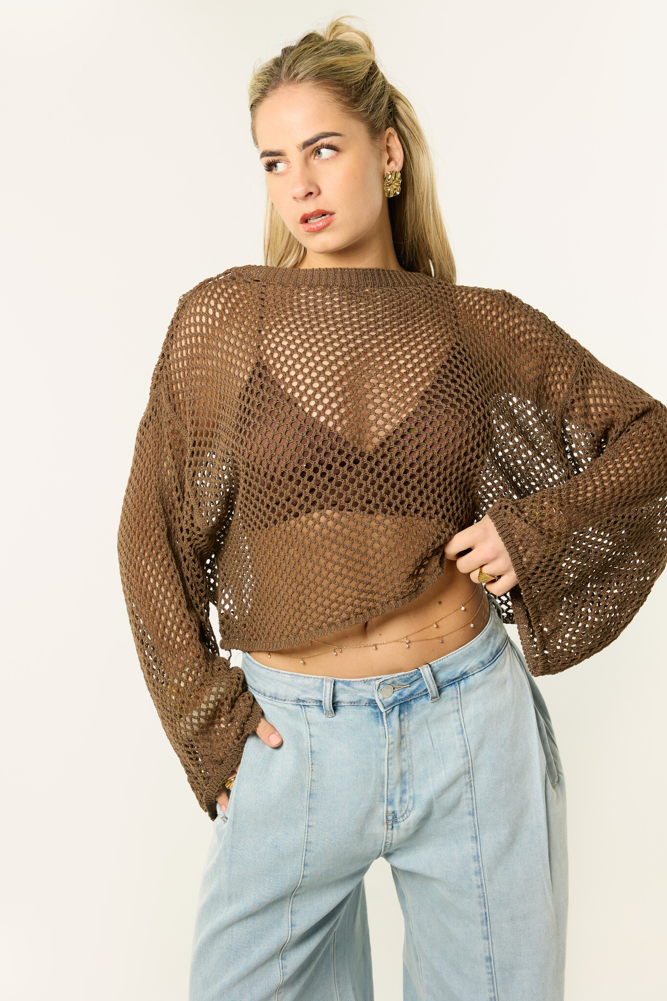 Combineer deze bruine crochet top met een jeans, short of rok voor een stijlvolle outfit. Draag hem met een bralette of top eronder voor een mooie layered look. De crochet top is perfect voor het voorjaar, festivals en zonnige dagen.
