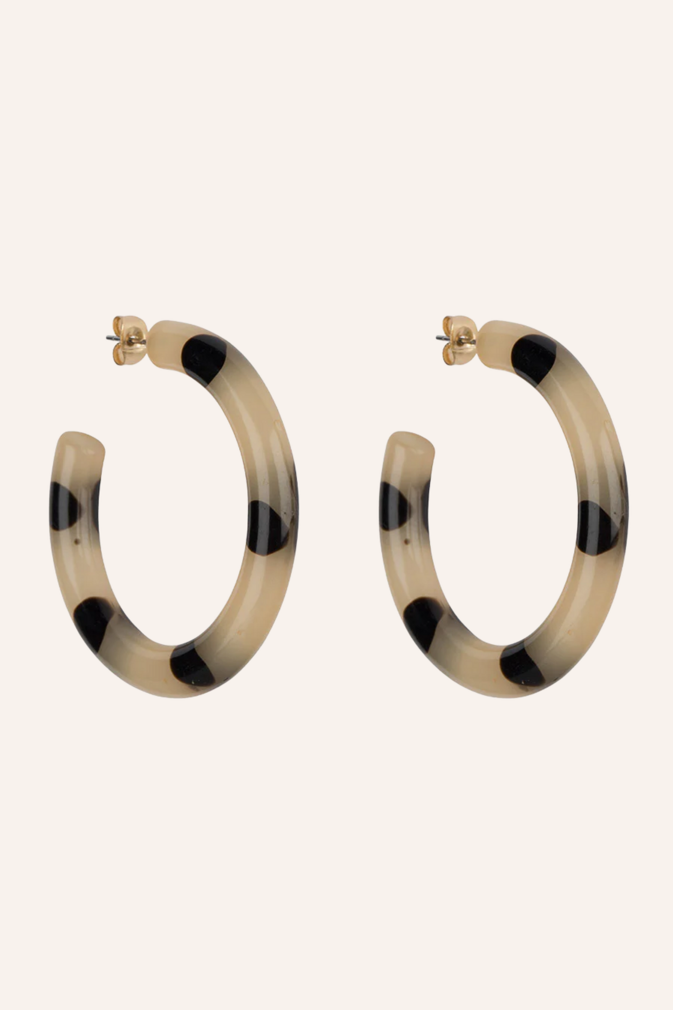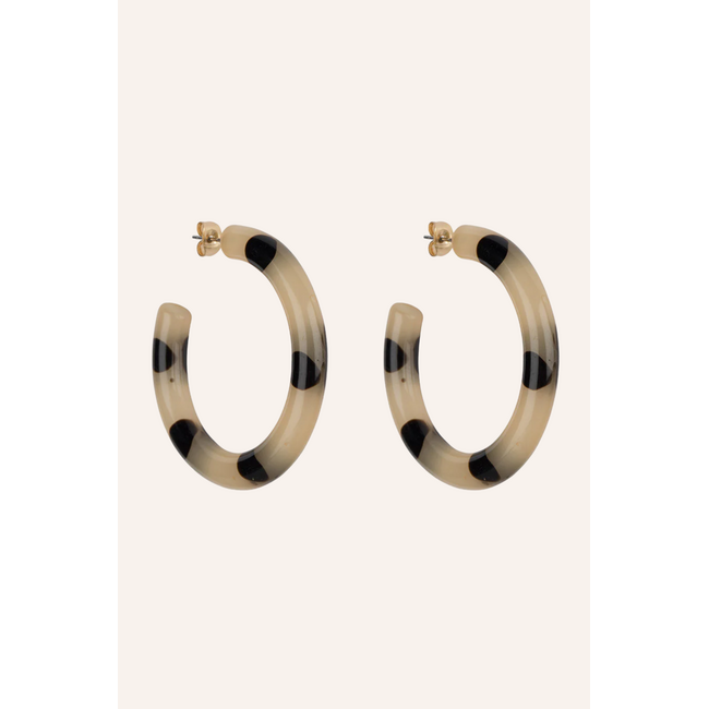 Beoordeel Dot hoops oorbellen | Beige/zwart