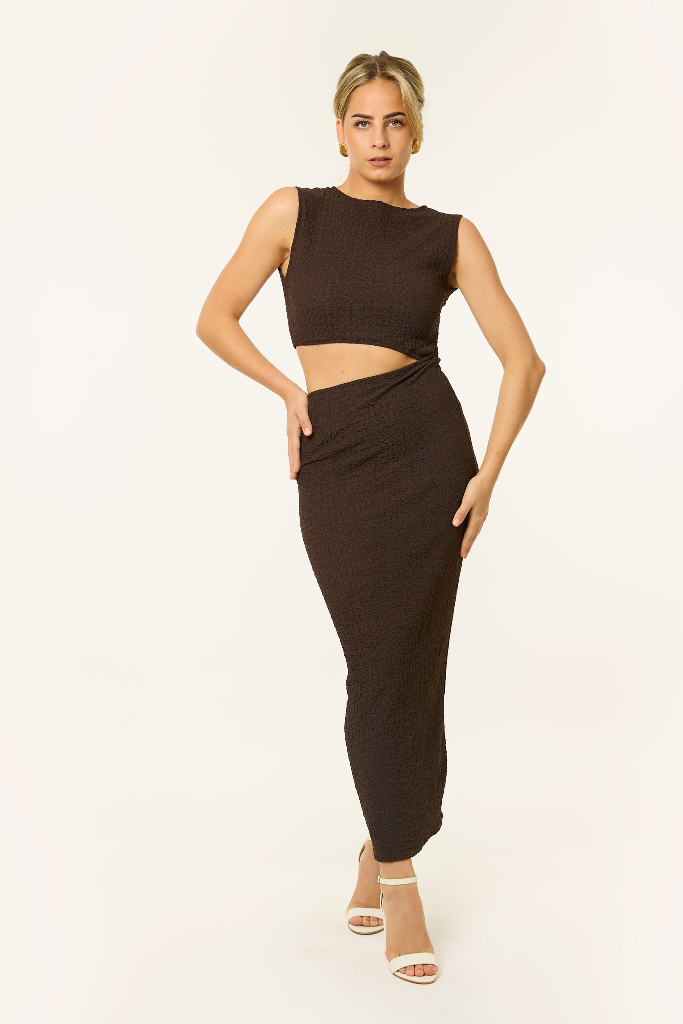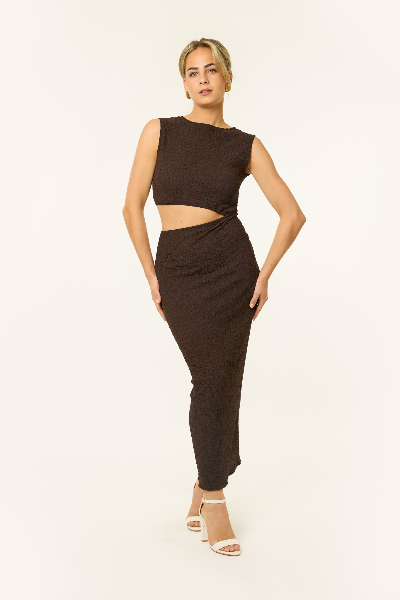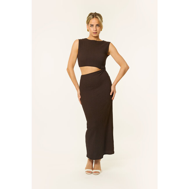 Bold & classy! Deze mouwloze lange jurk is de perfecte summer dress. Het cut-out detail geeft net dat beetje extra. Ideaal voor een zomerse avond, diner of feestje waar je wil opvallen! De jurk valt lang, is mouwloos en heeft een flatterende fit rond de taille. Combineer met hakken en sieraden voor een effortless statement look.