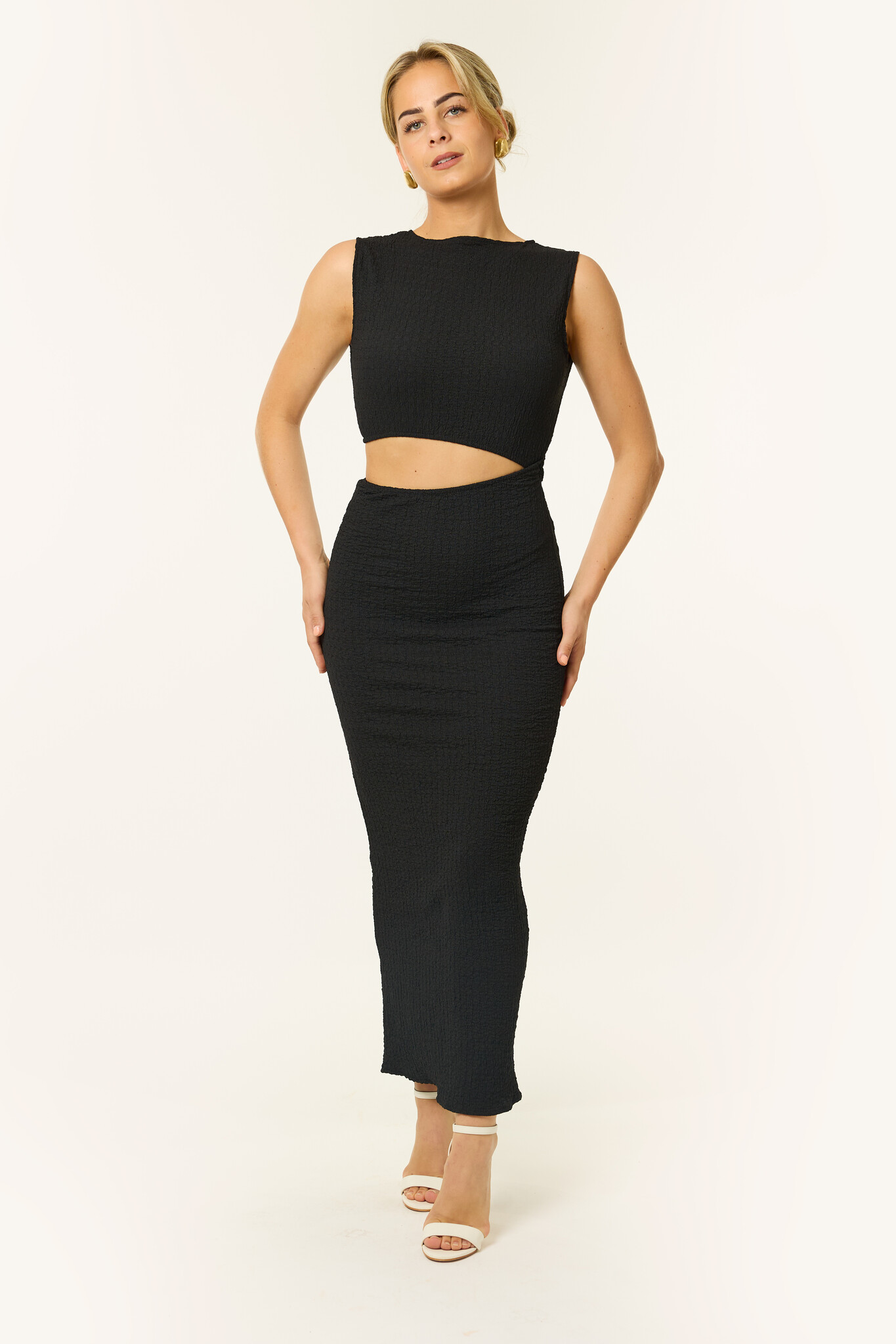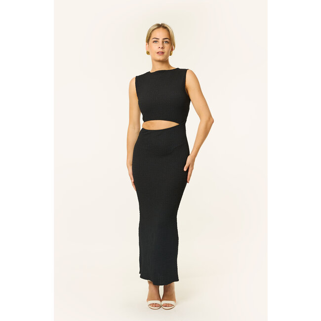 Bold & classy! Deze mouwloze lange jurk is de perfecte summer dress. Het cut-out detail geeft net dat beetje extra. Ideaal voor een zomerse avond, diner of feestje waar je wil opvallen! De jurk valt lang, is mouwloos en heeft een flatterende fit rond de taille. Combineer met hakken en sieraden voor een effortless statement look.