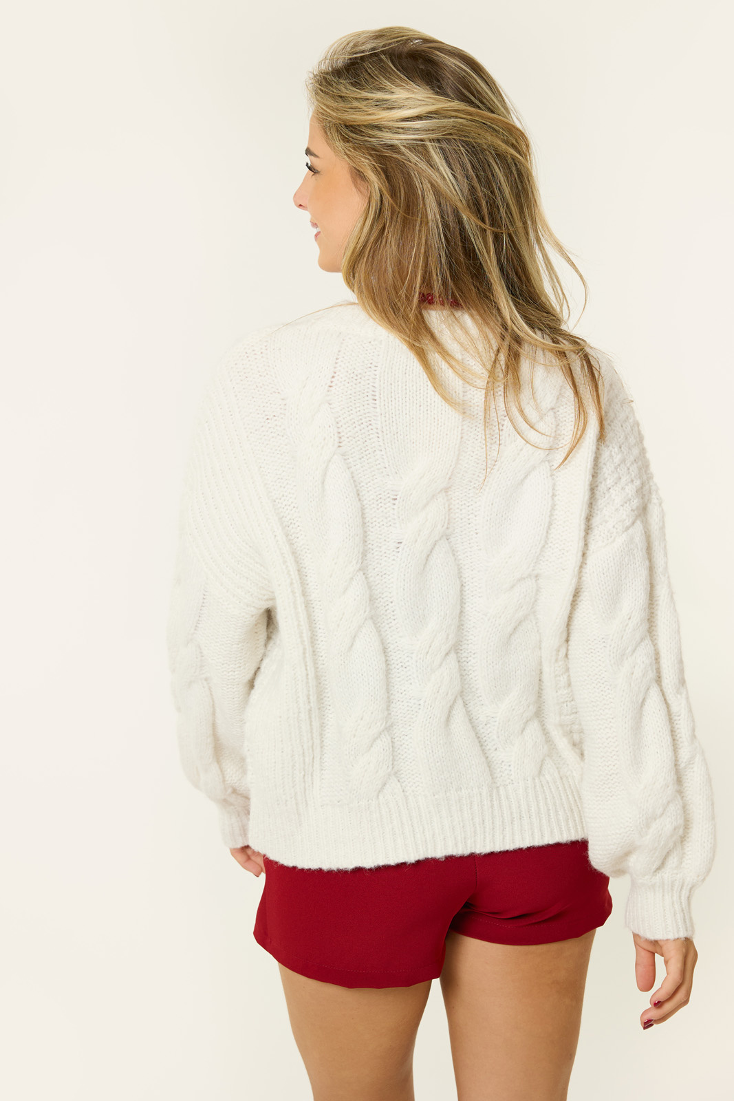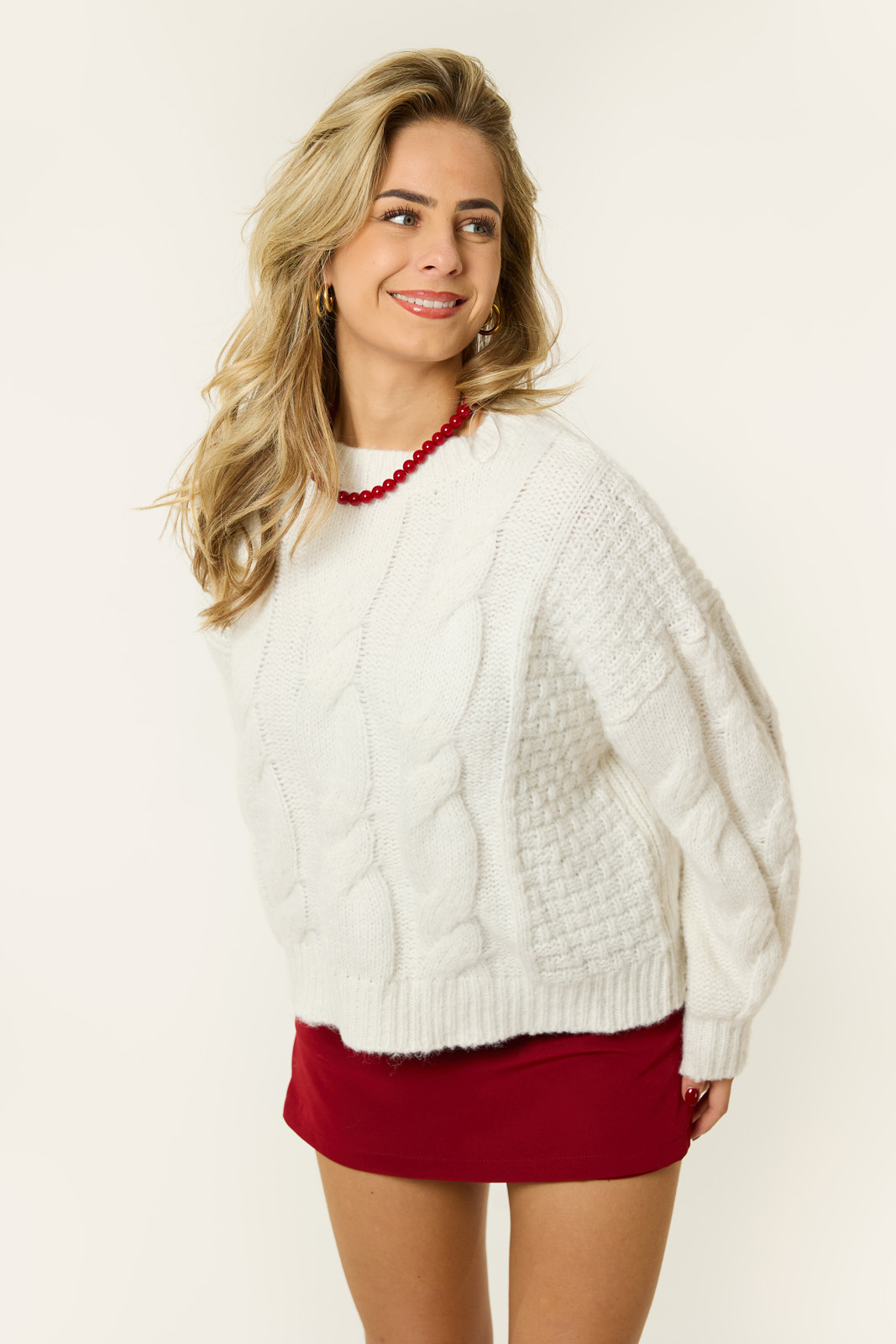 Deze witte kabeltrui is de ultieme basic die je het hele seizoen door kunt dragen. De chunky knit en het kabelpatroon geven de trui een cozy vibe, terwijl de losse pasvorm zorgt voor comfort en een relaxte uitstraling. Perfect om casual te combineren met een jeans, maar ook leuk gestyled met een rokje en laarzen. Een tijdloze witte dames trui die je eindeloos kunt combineren.