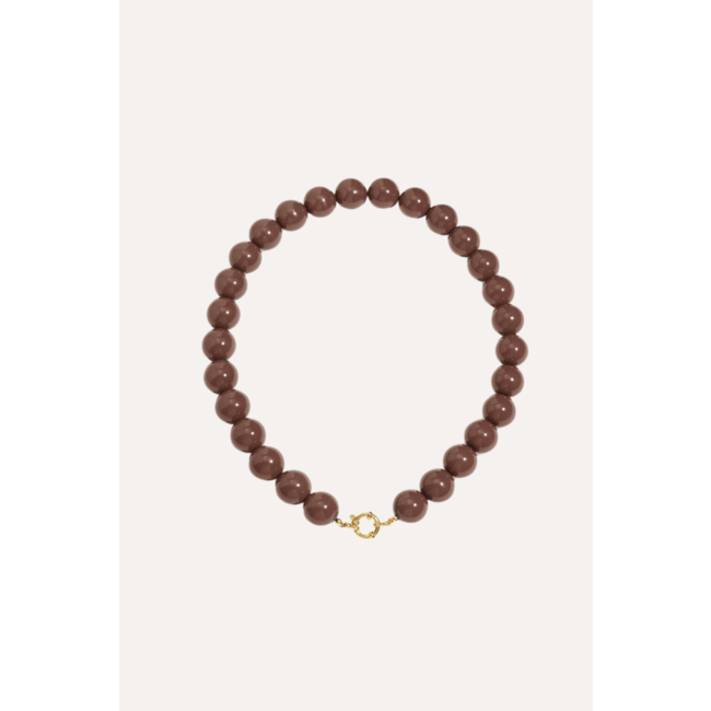 Statement alert! Deze donkerbruine kralenketting geeft elke look meteen een stijlvolle upgrade. De grove kralen in de bruine tint en de gouden sluiting zorgen voor een luxe en trendy uitstraling. Draag de ketting los als eyecatcher of mix hem met andere kettingen voor een trendy layered look. Perfect bij een basic top, oversized blouse of blazer, deze ketting maakt je outfit helemaal af.
