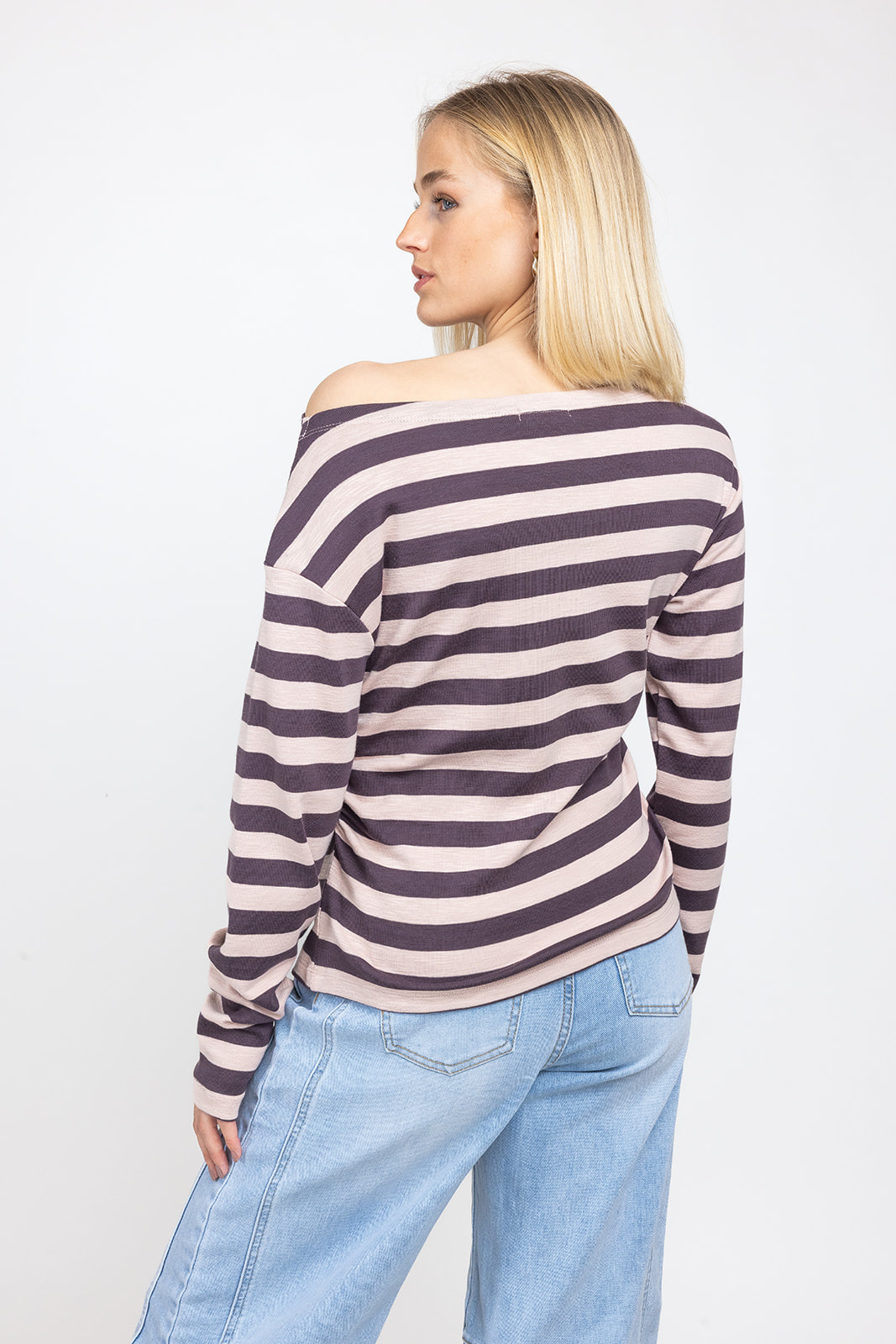 Draag de gestreepte longsleeve bijvoorbeeld off-shoulder voor een speelse uitstraling, of stijl hem op verschillende manieren voor een leuke everyday look.
