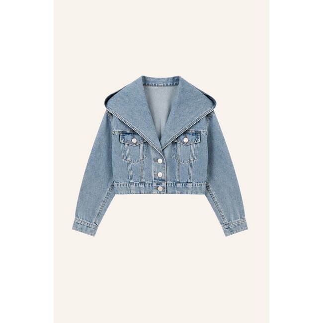 Cropped spijkerjasje met capuchon in een mooie lichtblauwe denim. Het jasje heeft een korte fit waardoor je taille mooi uitkomt en geeft je outfit een trendy, casual uitstraling. De capuchon zorgt voor een stoer detail en maakt het jasje net even anders.