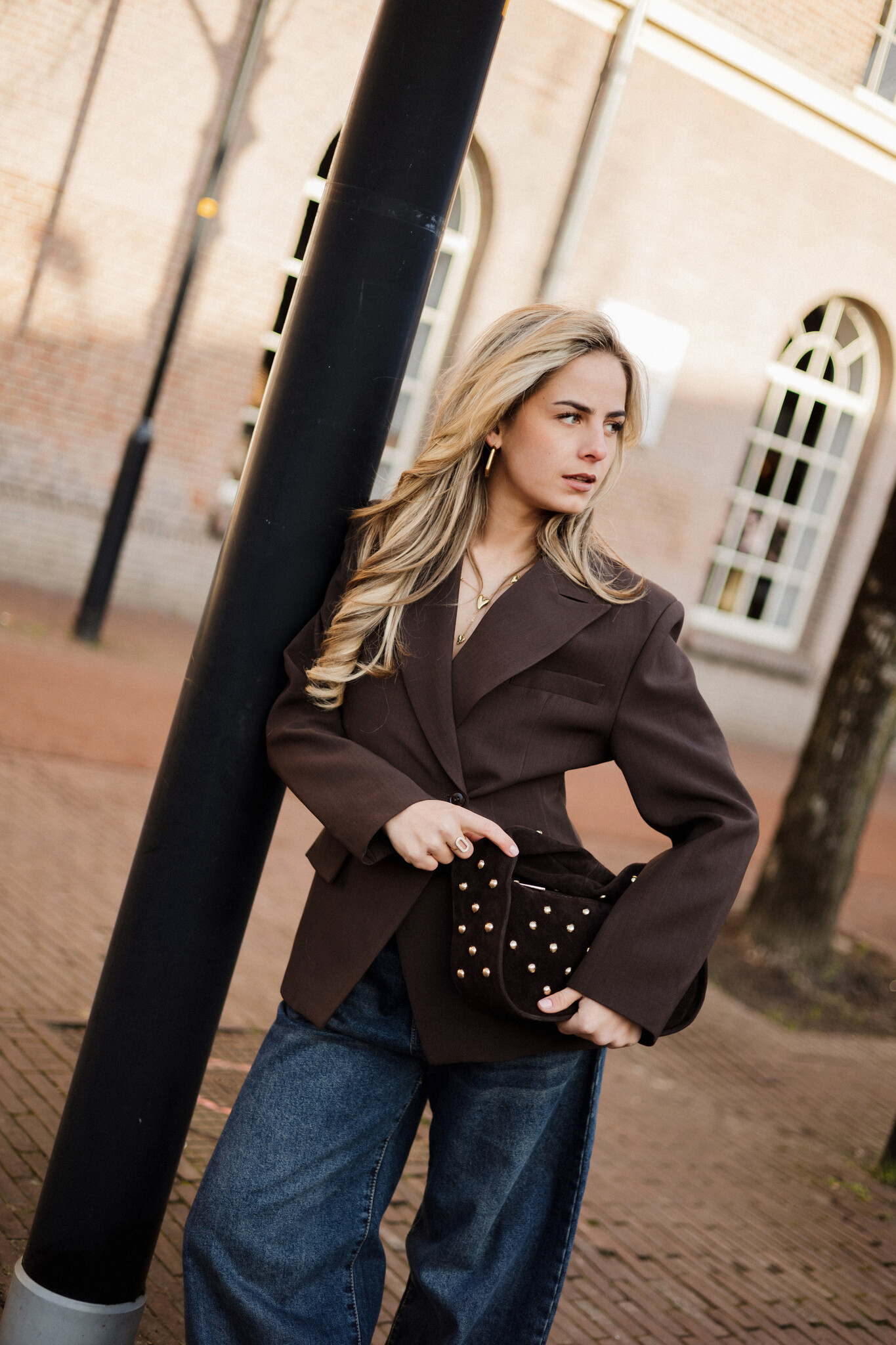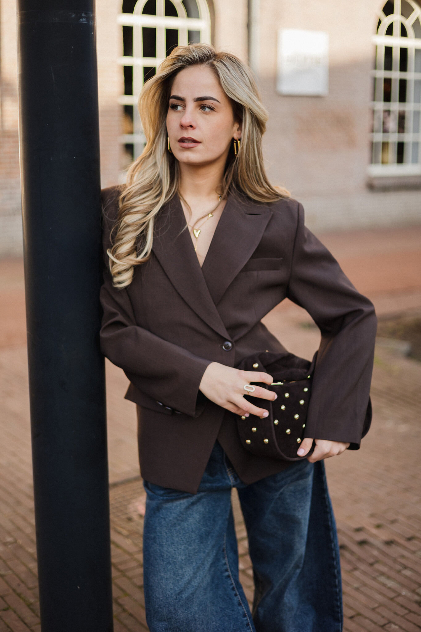 Deze bruine blazer is zo’n item dat je er makkelijk bij pakt en altijd goed zit. De stof valt mooi en voelt prettig aan, waardoor de blazer zowel comfortabel als stijlvol is. Draag de blazer als set met een bijpassende pantalon voor een krachtige look, of combineer hem juist los over een top voor een meer casual outfit. Een veelzijdig item dat je moeiteloos het hele jaar door draagt.