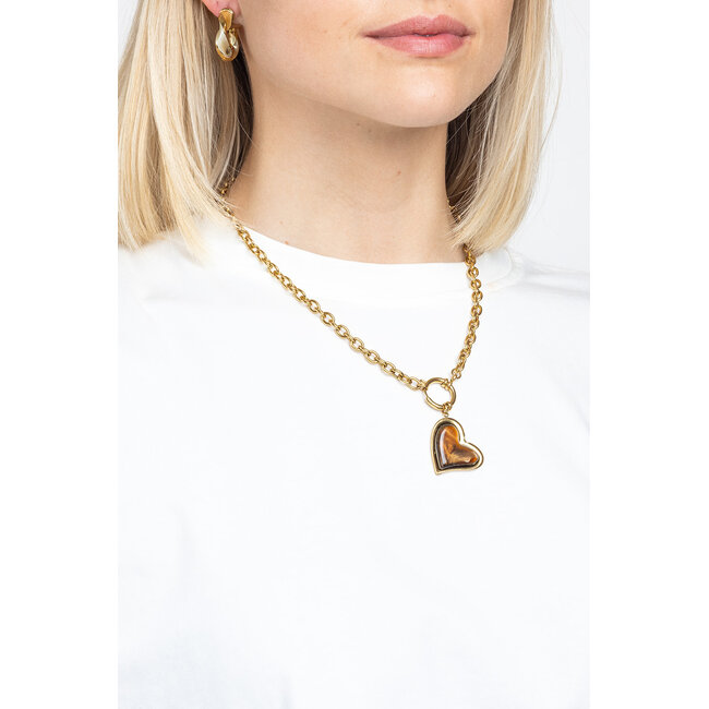 Deze gouden ketting met hart hanger is een echte eyecatcher en perfect als je op zoek bent naar een trendy en stijlvolle toevoeging aan je sieraden collectie. De goudkleurige ketting met hart bedel en de grove schakel geven de ketting een trendy en luxe uitstraling, terwijl het hartje zorgt voor een vrouwelijke touch. Draag deze gouden dames ketting met hanger los of combineer met andere sieraden voor een complete look.