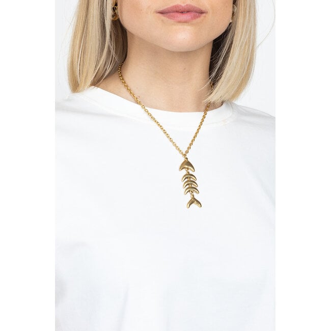 Deze gouden ketting met vis hanger is een echte eyecatcher en perfect als je op zoek bent naar een trendy en stijlvolle toevoeging aan je sieraden collectie. De goudkleurige ketting met vis bedel geeft de ketting een trendy uitstraling. Draag deze gouden dames ketting met vis hanger los of combineer met andere sieraden voor een complete look.