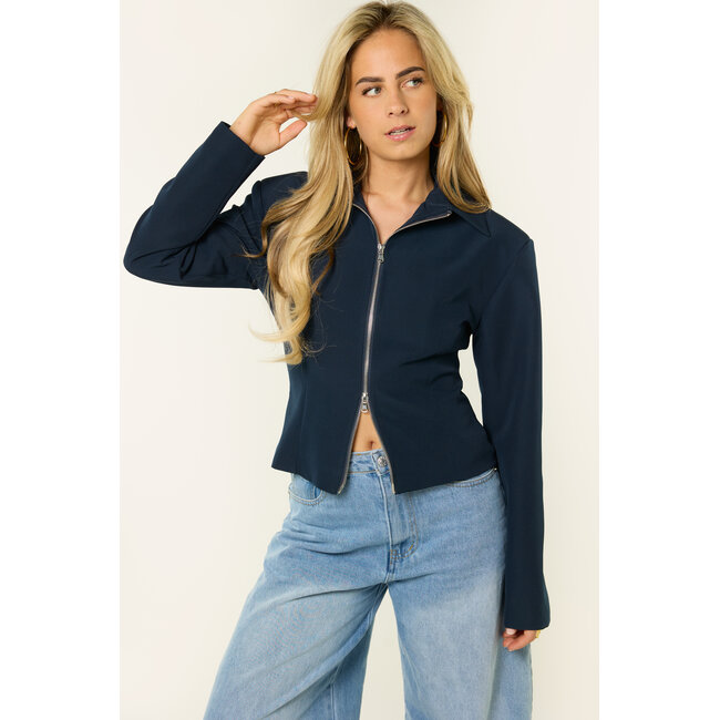Beoordeel Kim blazer met dubbele rits | Donkerblauw