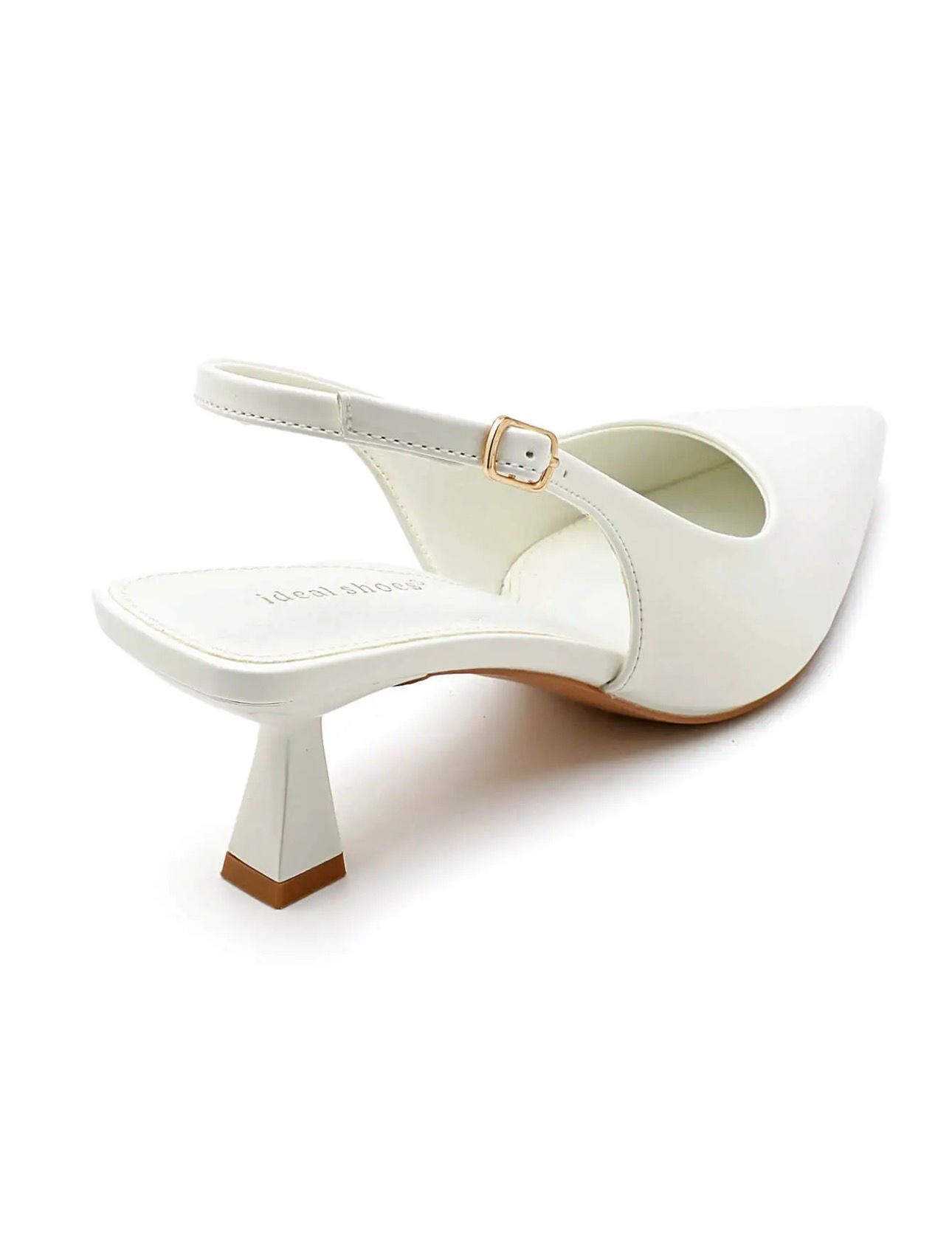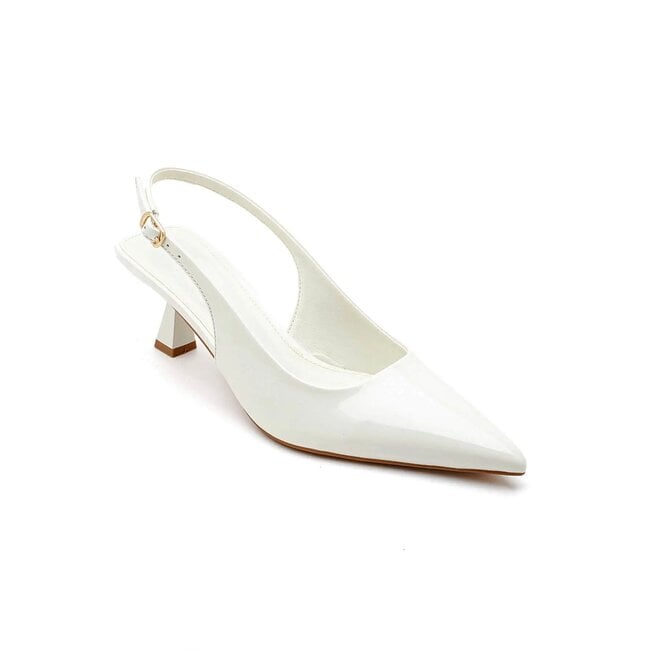 Deze witte kitten heels zijn een echte must-have die niet mag ontbreken in je kast. De puntige neus en lage hak zorgen voor een vrouwelijke en trendy look. Dankzij de witte kleur zijn deze witte hakken makkelijk te combineren met een jeans, jurk, rok of pantalon. De witte slingback hakken zijn perfect voor zowel overdag als een avondje uit.