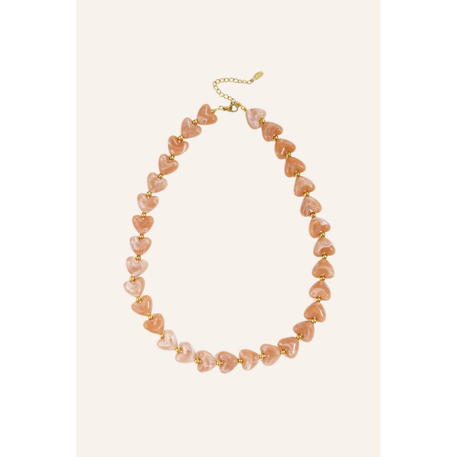 Kralenketting hartjes | Zalmroze