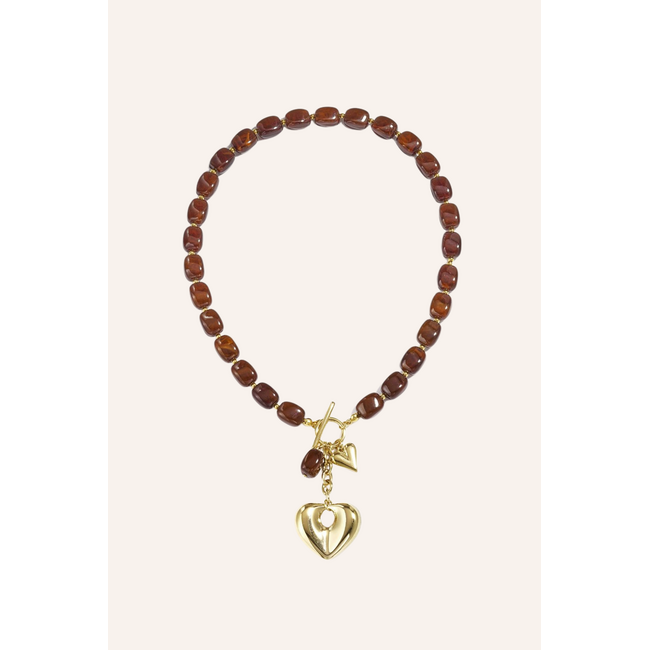 Kralenketting met bedels | Bruin
