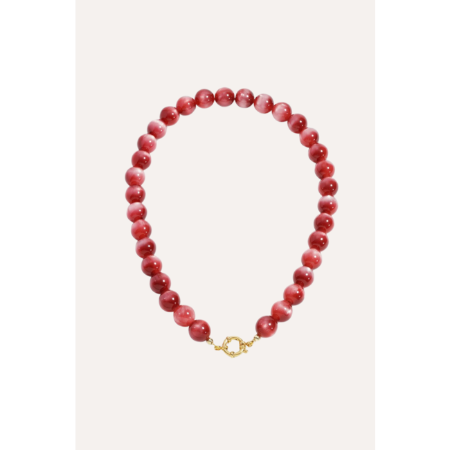 Deze cherry red kralenketting is de perfecte toevoeging aan je sieradencollectie. De ketting is gemaakt van kleine stenen kralen. Perfect om los te dragen of te layeren met andere kettinkjes voor net dat beetje extra.