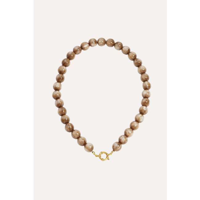 Deze bruine kralenketting is de perfecte toevoeging aan je sieradencollectie. De ketting is gemaakt van kleine stenen kralen. Perfect om los te dragen of te layeren met andere kettinkjes voor net dat beetje extra.