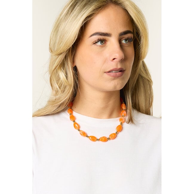 Deze oranje kralen ketting is de perfecte finishing touch voor je Koningsdag outfit. De ketting heeft opvallende oranje kralen met goudkleurige details, waardoor hij meteen een vrolijke en trendy look geeft. Draag deze oranje ketting tijdens Koningsdag, een festival of als kleurrijk accent bij je outfit. Een echte statement ketting die je look net dat beetje extra geeft.