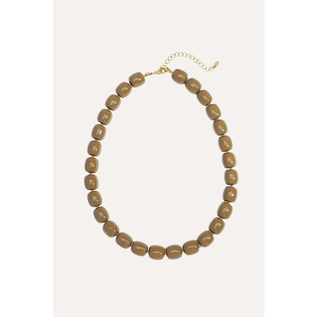 Deze bruine kralenketting is de perfecte toevoeging aan je sieradencollectie. De ketting is gemaakt van kralen in een vierkante vorm. Perfect om los te dragen of te layeren met andere kettinkjes voor net dat beetje extra.