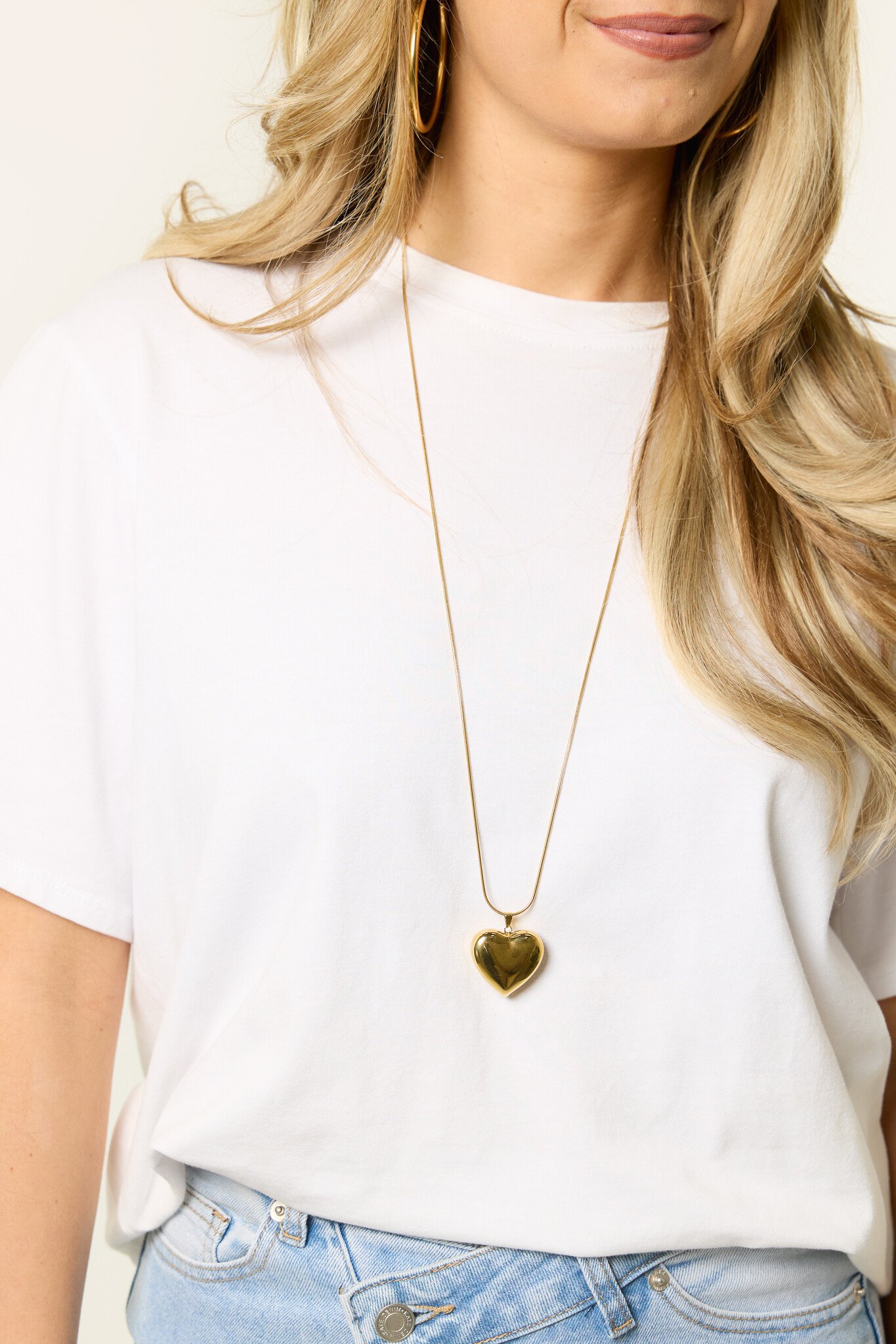 Deze gouden ketting met hart is zo’n sieraad dat je outfit meteen afmaakt. De lange gouden ketting met hart hanger geeft een subtiele maar stijlvolle touch en is makkelijk te combineren. Mooi bij een casual outfit om je look net even op te pimpen.