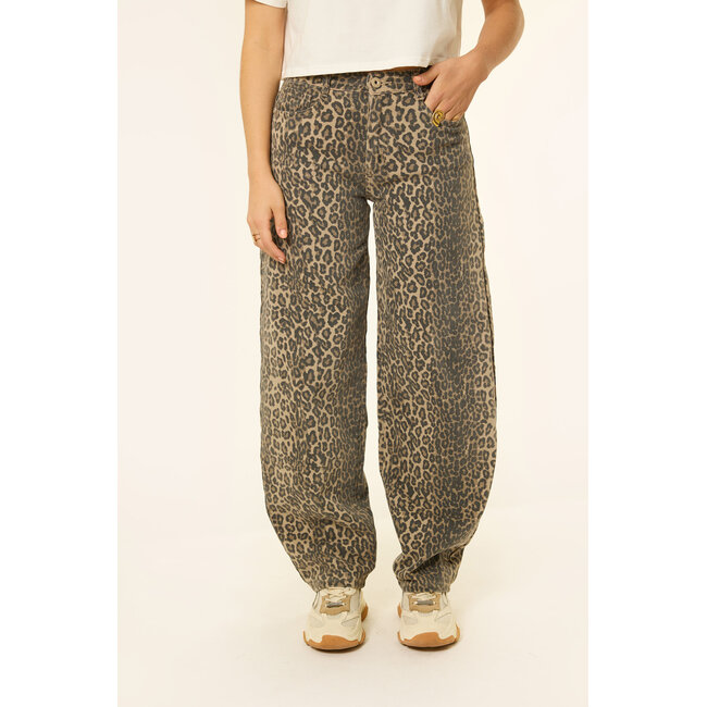 Deze leopard balloon jeans is een echte eye-catcher! De high waist en wijde ballonvorm geven de broek een trendy, fun look, terwijl de stevige denim met lichte stretch zorgt voor een comfortabele fit. De subtiele leopardprint maakt de balloon broek stoer maar toch stijlvol. Combineer met een basic tee voor een casual outfit of met een blazer en laarzen voor een fashionable look.