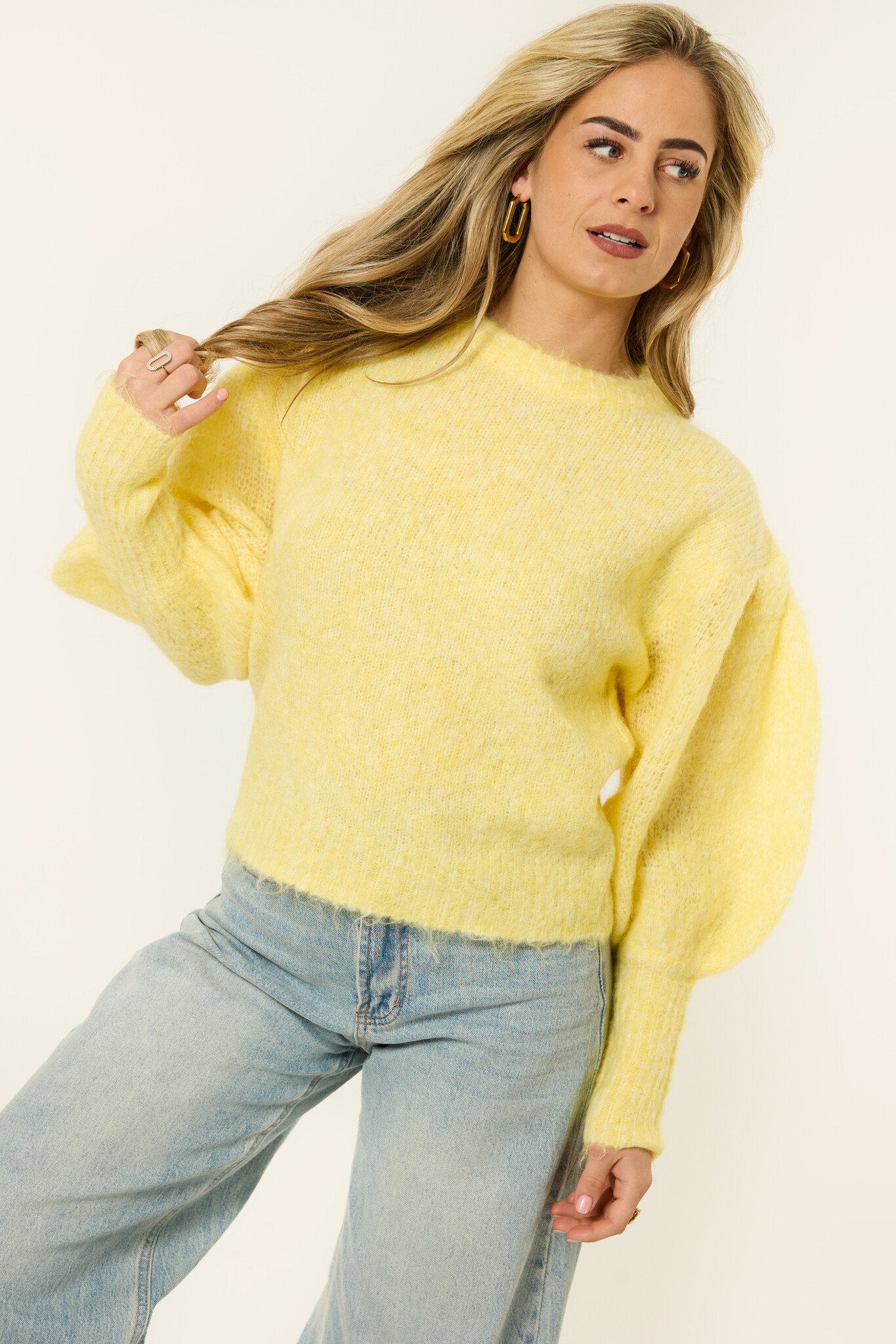 Deze gele trui brengt meteen een frisse, zonnige vibe in je outfit. De zachte, gebreide stof voelt heerlijk comfortabel aan en maakt ’m perfect voor elke dag. De licht pofmouwen geven de trui een vrouwelijke en speelse uitstraling, terwijl de relaxed fit zorgt voor een fijne, nonchalante look. Door de warme gele tint is dit zo’n item dat je outfit direct laat opvallen, maar toch makkelijk combineert. Draag ’m met een jeans voor een casual look of style ’m met een pantalon voor een iets nettere twist. Een comfy trui waar je instant blij van wordt.