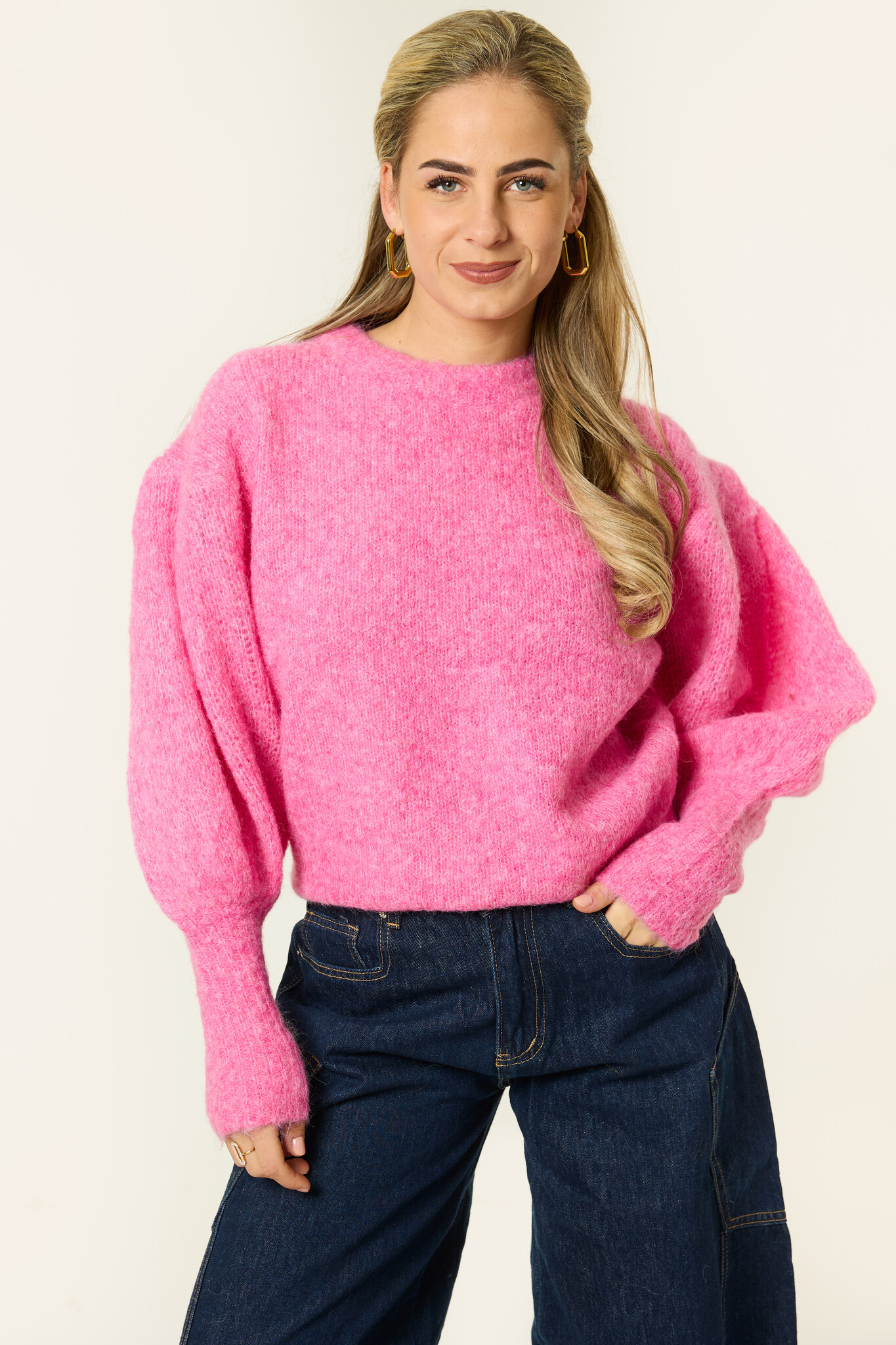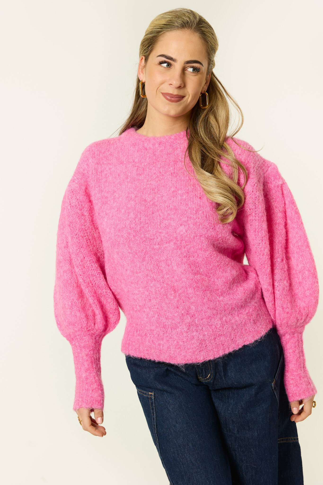 Deze roze trui is een echte eyecatcher en geeft elke outfit meteen een vrolijke boost. De zachte, gebreide stof voelt heerlijk comfortabel aan en maakt deze trui perfect voor elke dag. De pofmouwen zorgen voor een speelse en vrouwelijke touch, terwijl de aansluitende boorden de trui mooi in model houden. Door de frisse kleur springt hij er meteen uit, maar is hij toch verrassend makkelijk te combineren. Draag ’m op een jeans voor een casual look of combineer met een pantalon voor een iets nettere uitstraling. Een trui die comfy zit én je outfit laat stralen.