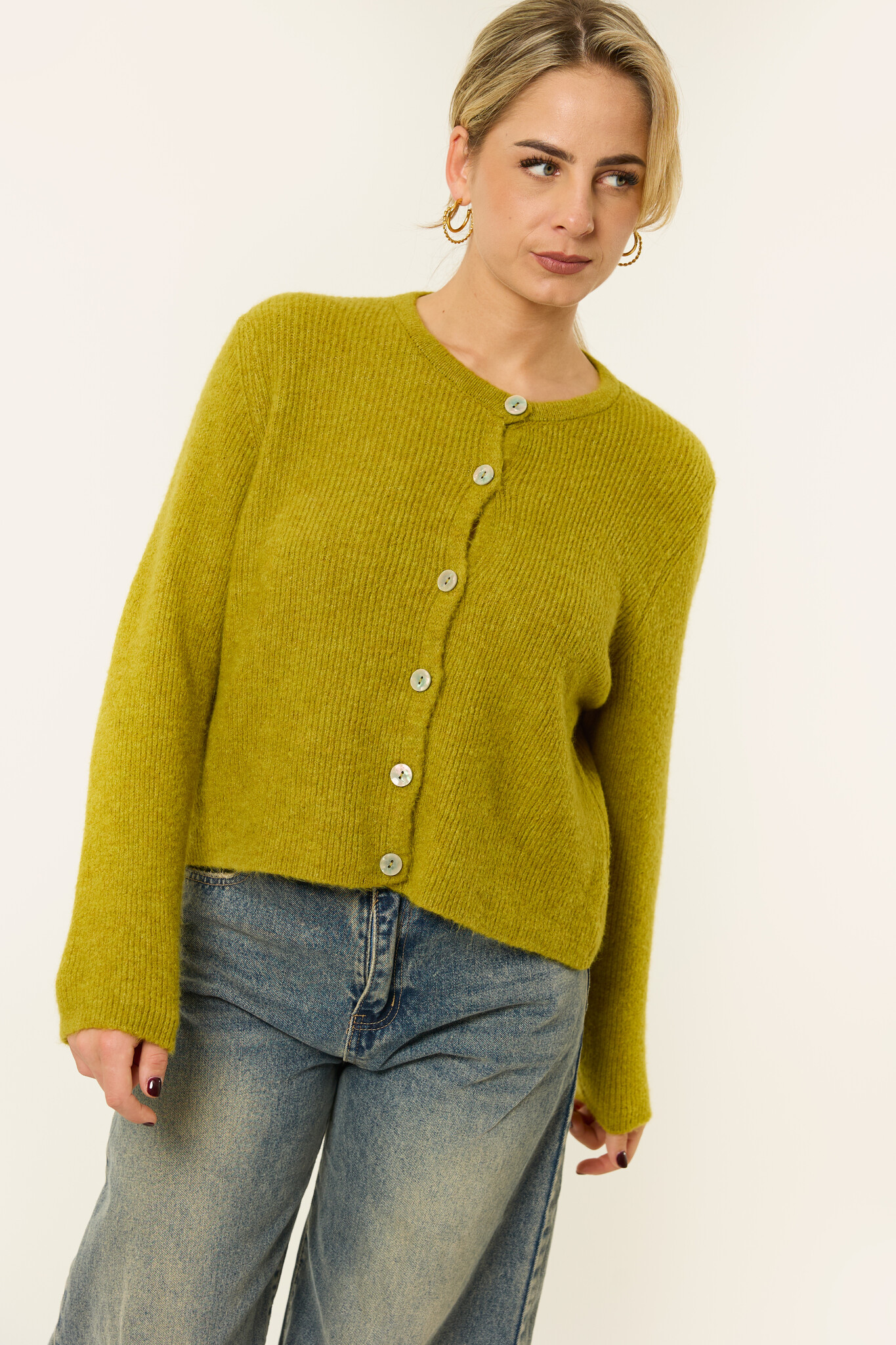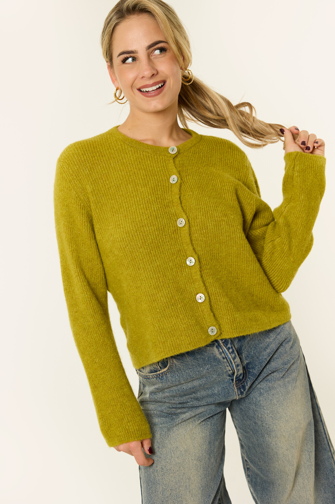 Op zoek naar een groen vest voor dames dat zowel comfy als stylish is? Dit knitted vest is gemaakt van een zachte, gebreide kwaliteit en heeft een relaxed fit die heerlijk draagt. De parelmoer-look knopen geven het gebreide vest een subtiele, feminine touch. Perfect als basic vest voor elke dag: combineer het groen dames vest met een jeans voor een casual look, of draag het als laagje over een top voor extra warmte. Een echte musthave voor dit seizoen.