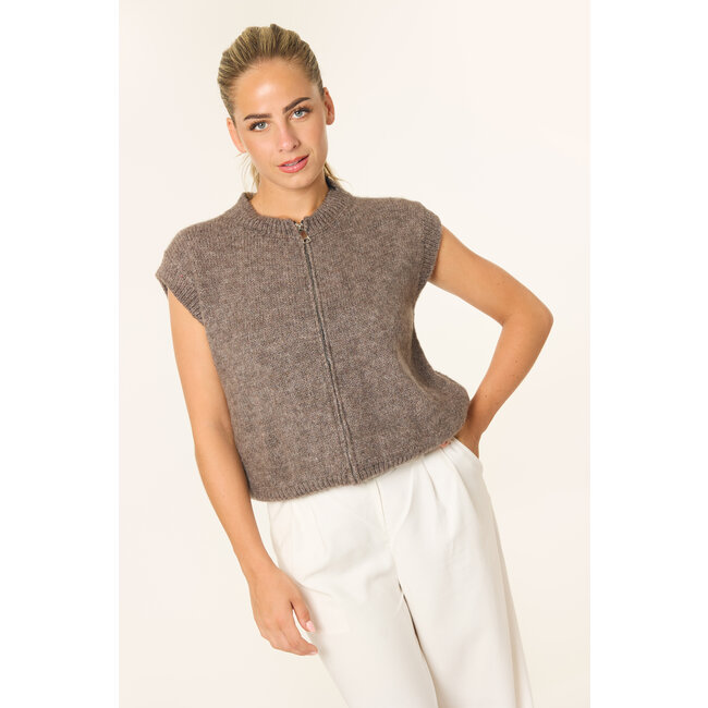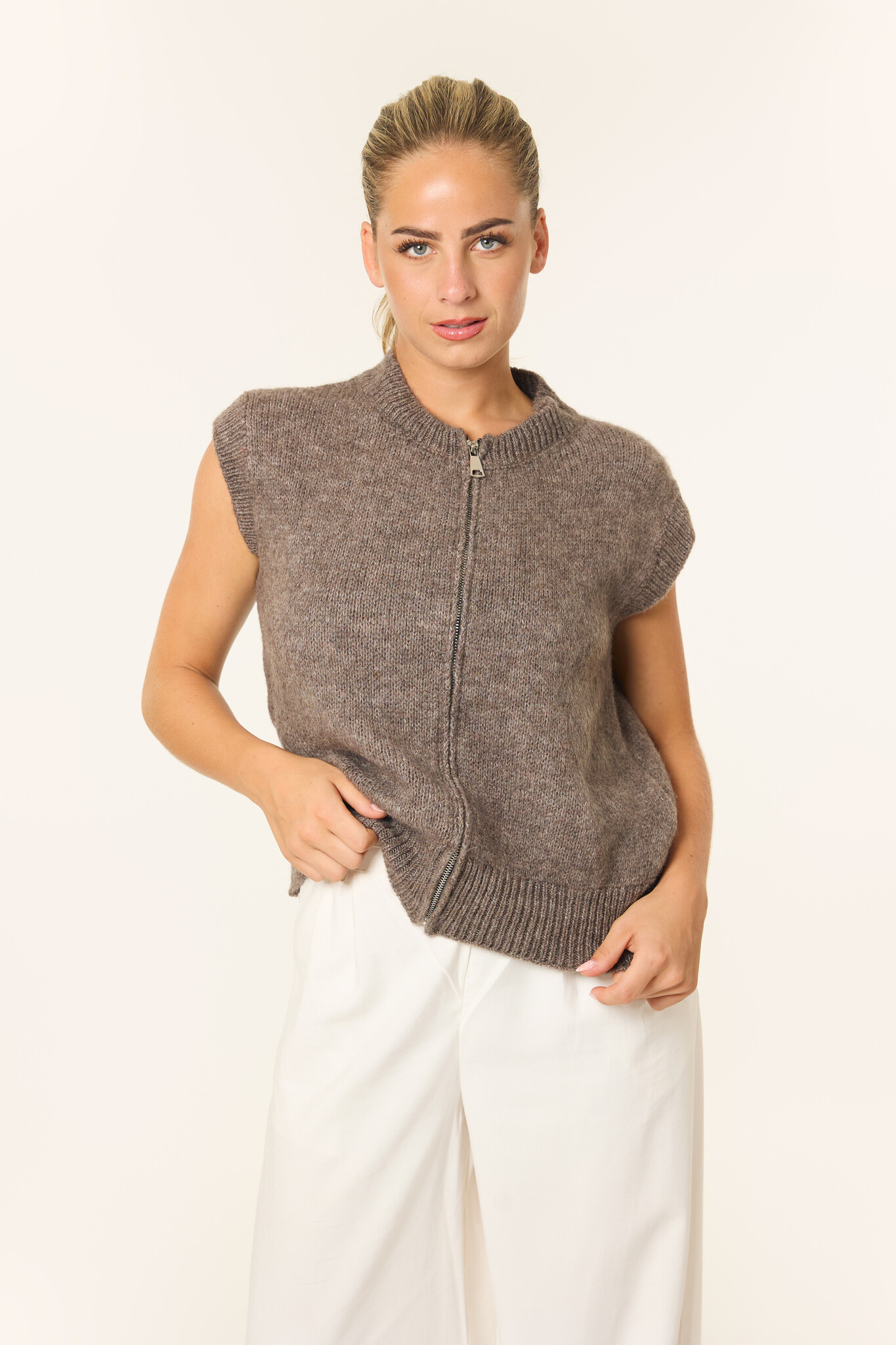 Deze taupe spencer met rits is de perfecte layering piece voor jouw herfst garderobe. Het design met de rits geeft dat beetje extra, terwijl de neutrale taupe kleur zorgt dat je de spencer eindeloos kunt combineren. Draag de spencer over een blouse of basic tee voor een casual look, of style met een pantalon voor een classy vibe.
