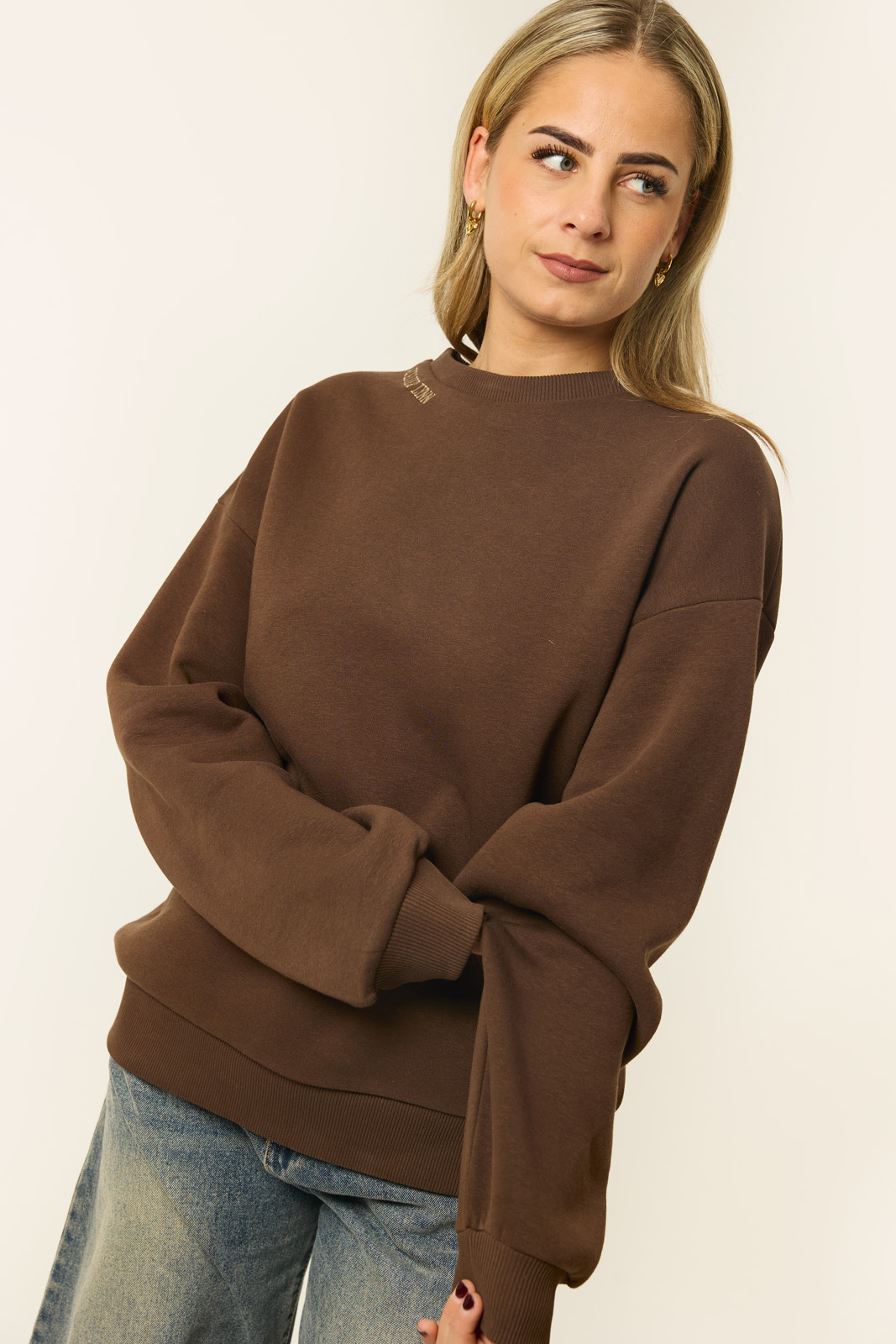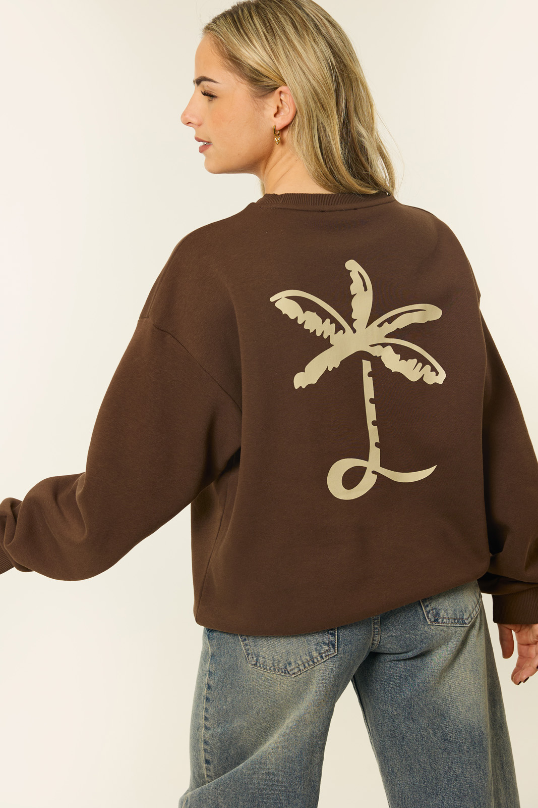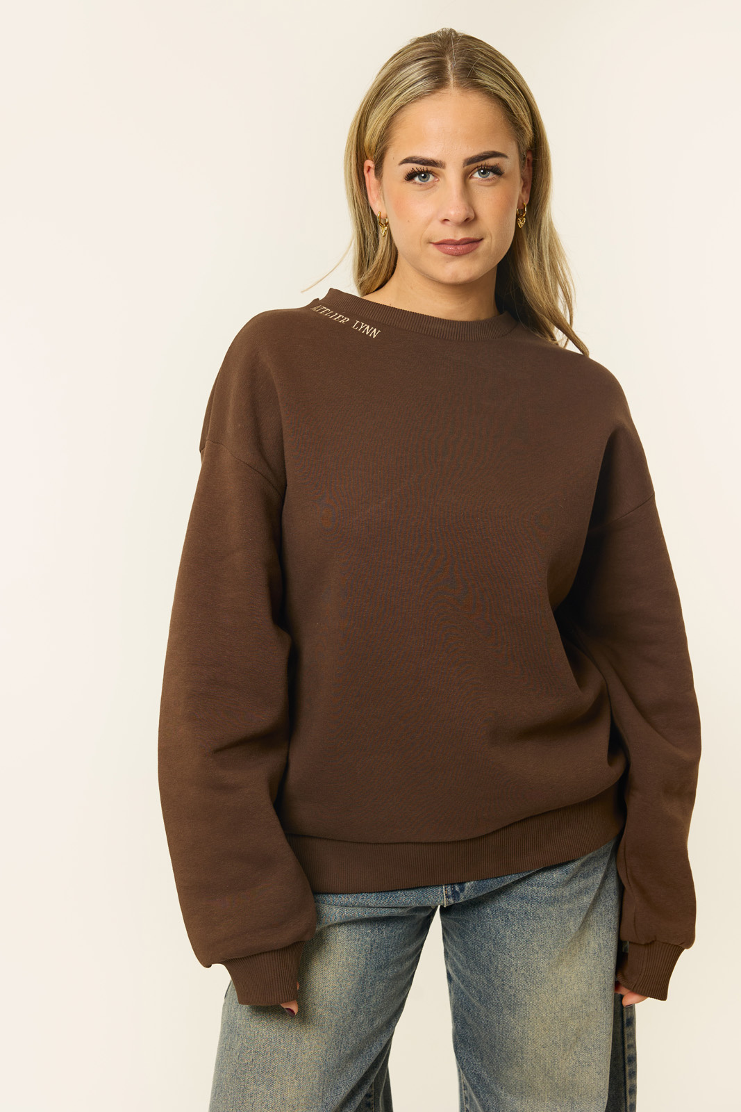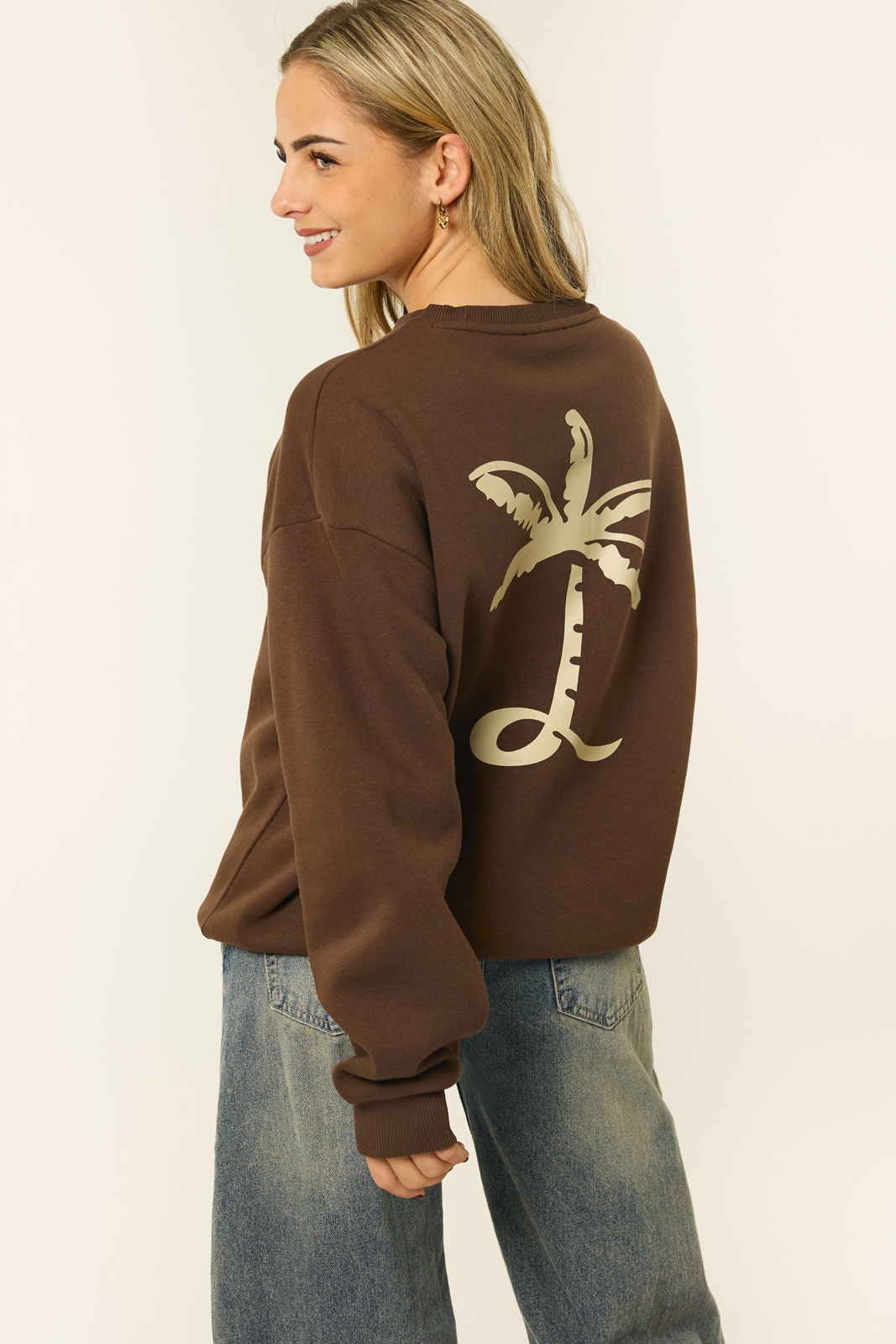 Deze bruine sweater is comfy, warm en superstylish tegelijk. De zachte stof valt soepel om je heen en dankzij het relaxte model kun je de trui eindeloos combineren, van je favoriete jeans tot een nette pantalon. Op de borst staat subtiel Atelier Lynn geborduurd en op de achterkant vind je het grote palmbomen logo dat de trui net dat beetje extra geeft. Een ideale sweater voor everyday wear, cozy weekends en alles daartussen en perfect om jouw garderobe een tijdloze, stijlvolle upgrade te geven.