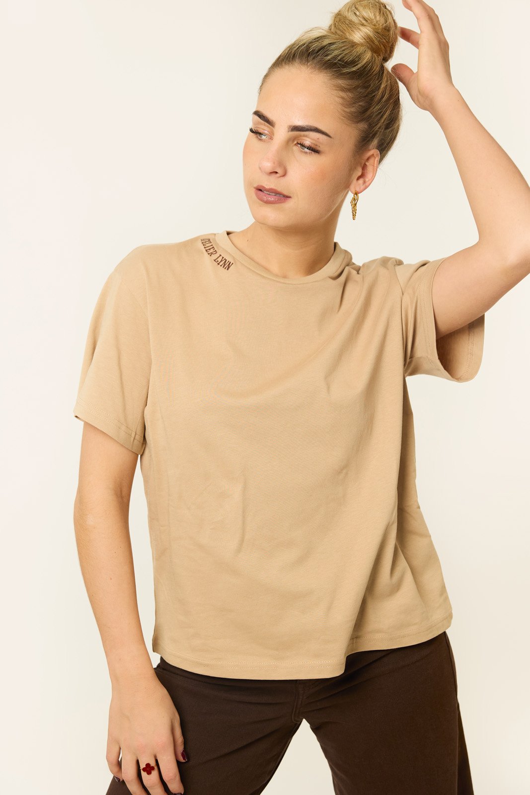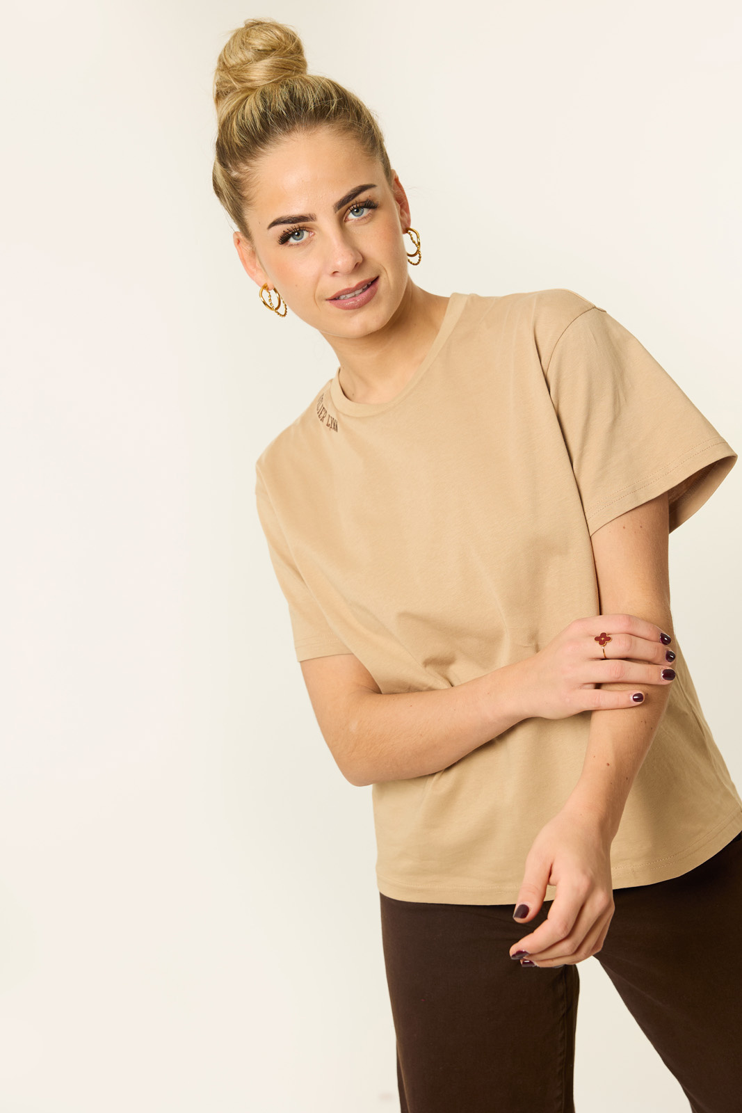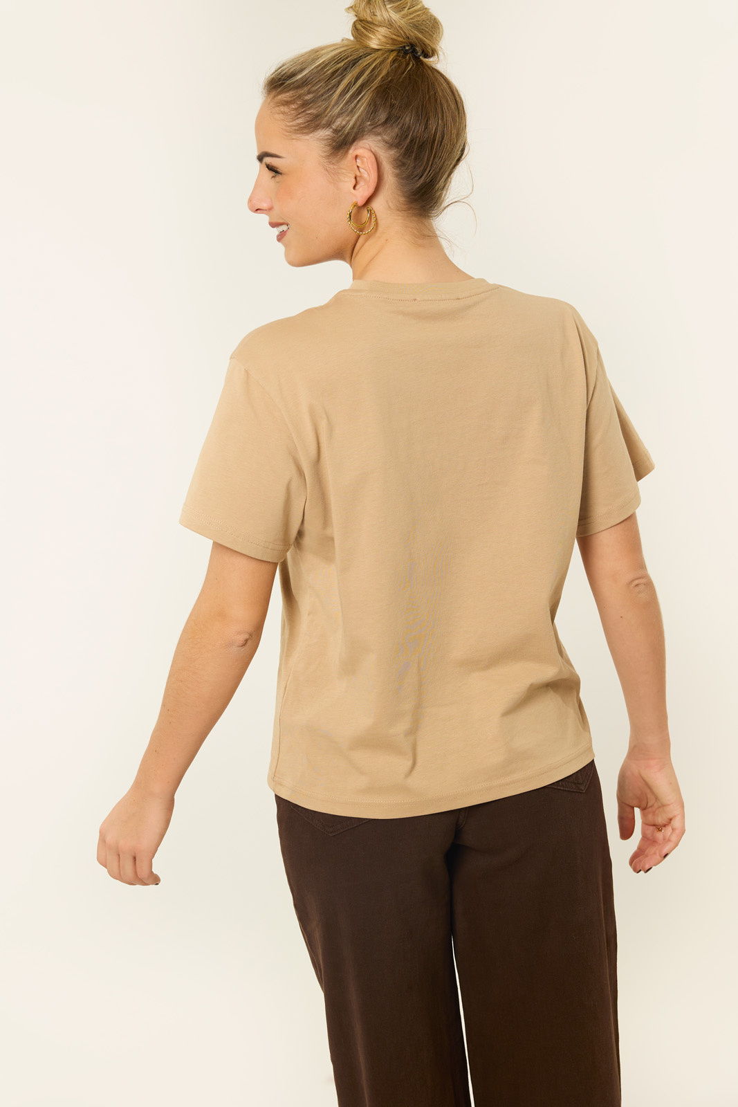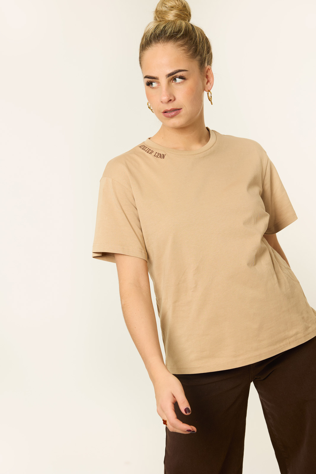 Ons beige short sleeve tee is zo’n basic die je echt overal bij aantrekt. Het T-shirt heeft een zachte, soepele stof, een relaxed fit en een subtiel “Atelier Lynn” detail bij de hals, precies die kleine touch die een basic net iets leuker maakt. Dankzij de neutrale beige kleur is dit dames T-shirt perfect om te combineren met jeans, wide leg broeken of onder een blazer. Een comfortabele essential die je het hele jaar door blijft dragen.