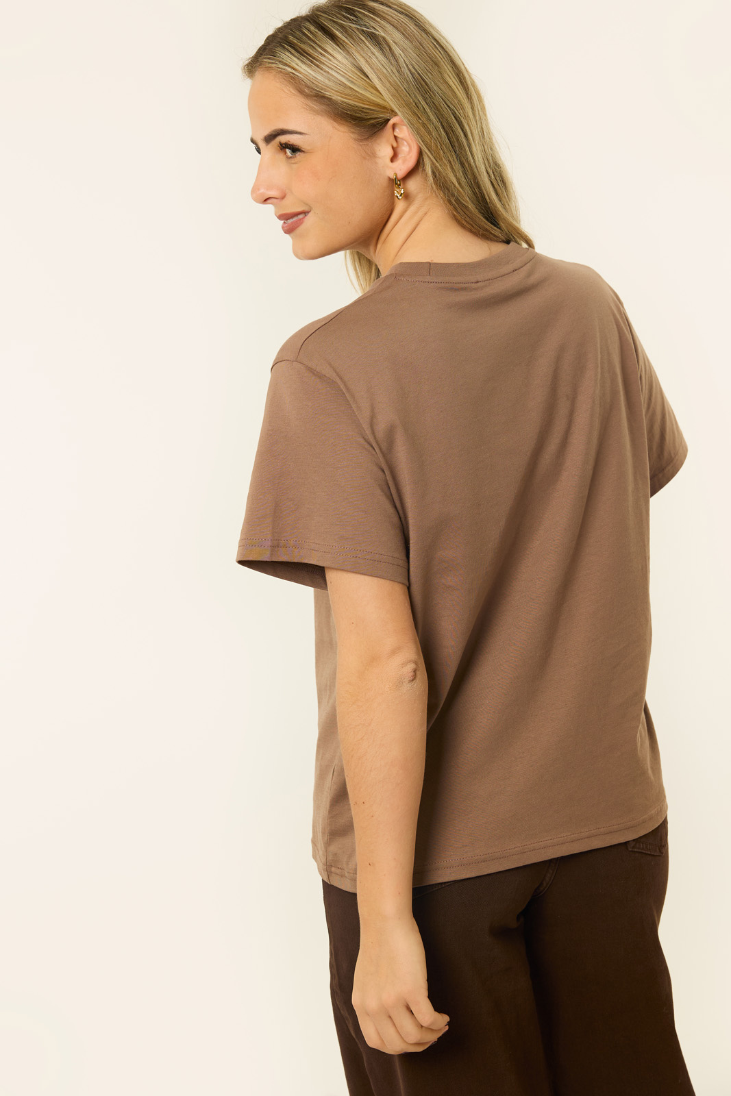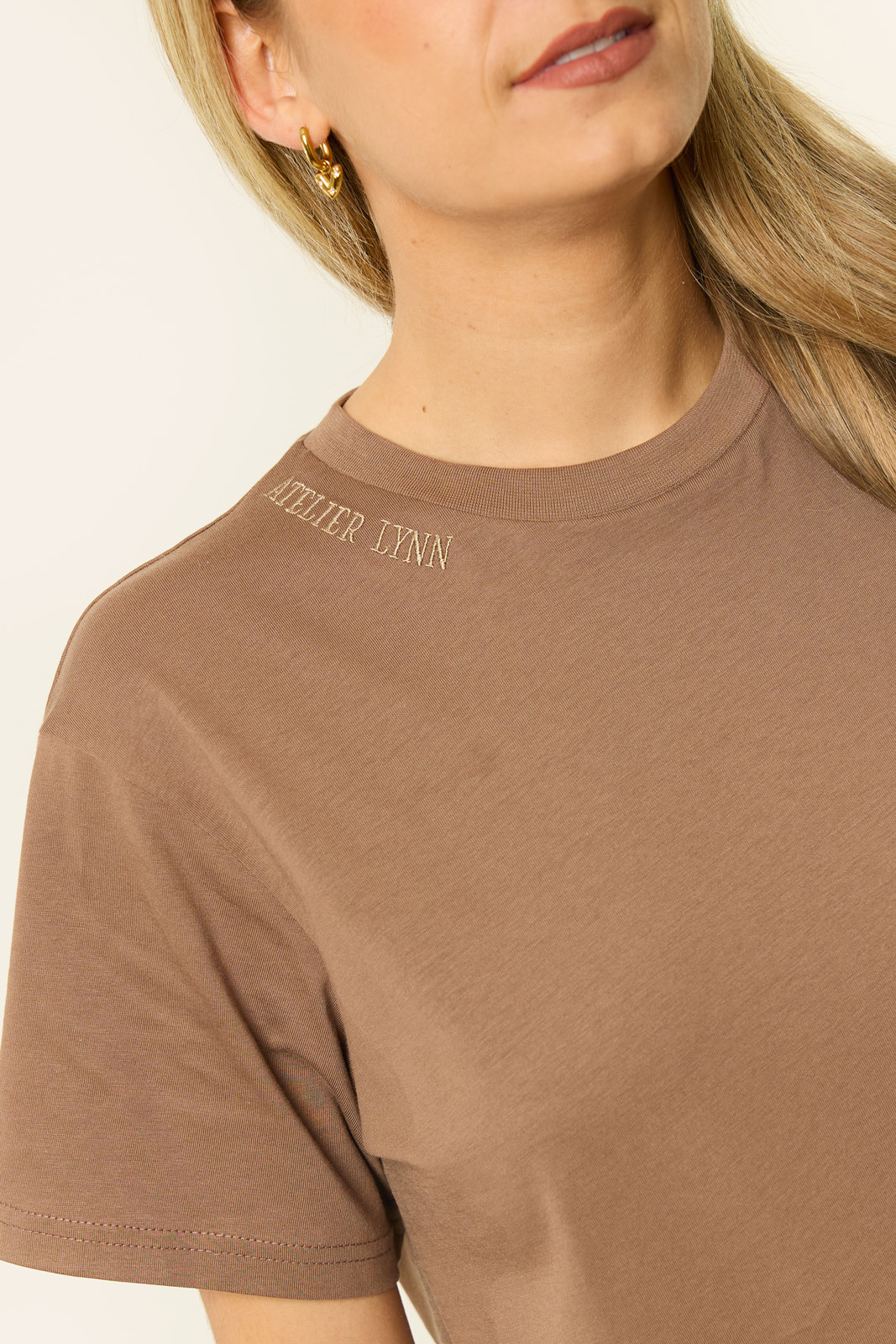 Dit bruine Atelier Lynn T-shirt is zo’n basic die je het hele jaar door blijft pakken. De zachte katoen mix zit super comfortabel, terwijl de subtiele Atelier Lynn embroidery bij de hals het shirt nét dat extra’s geeft. De warme bruine tint is makkelijk te combineren met jeans, een pantalon of een comfy lounge-fit. Perfect voor een casual day of als rustige basic onder een blazer en precies zo’n tijdloze essential die elke garderobe nodig heeft.